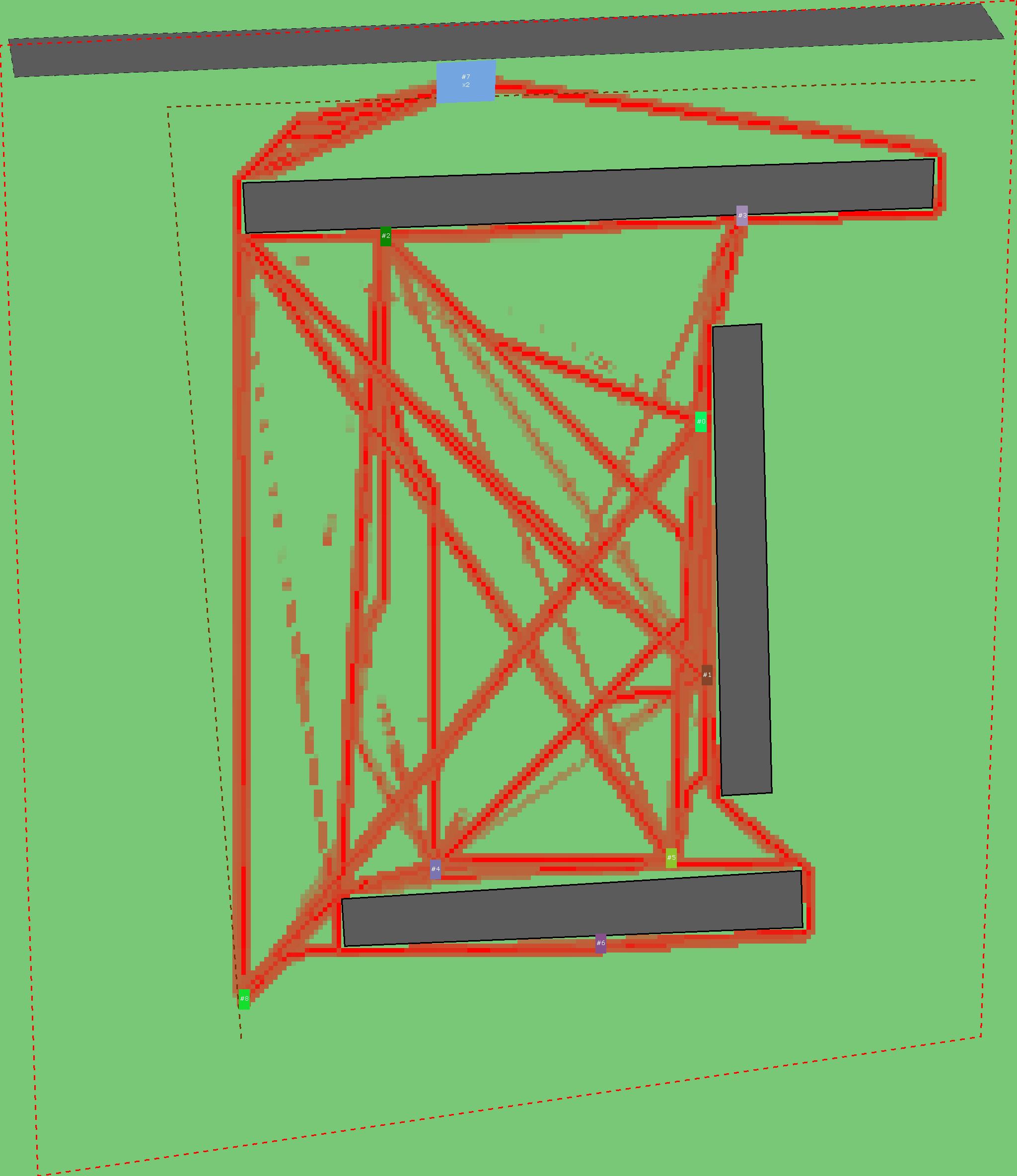 Красным цветом показаны места, где, вероятнее всего, появятся стихийные тропы..