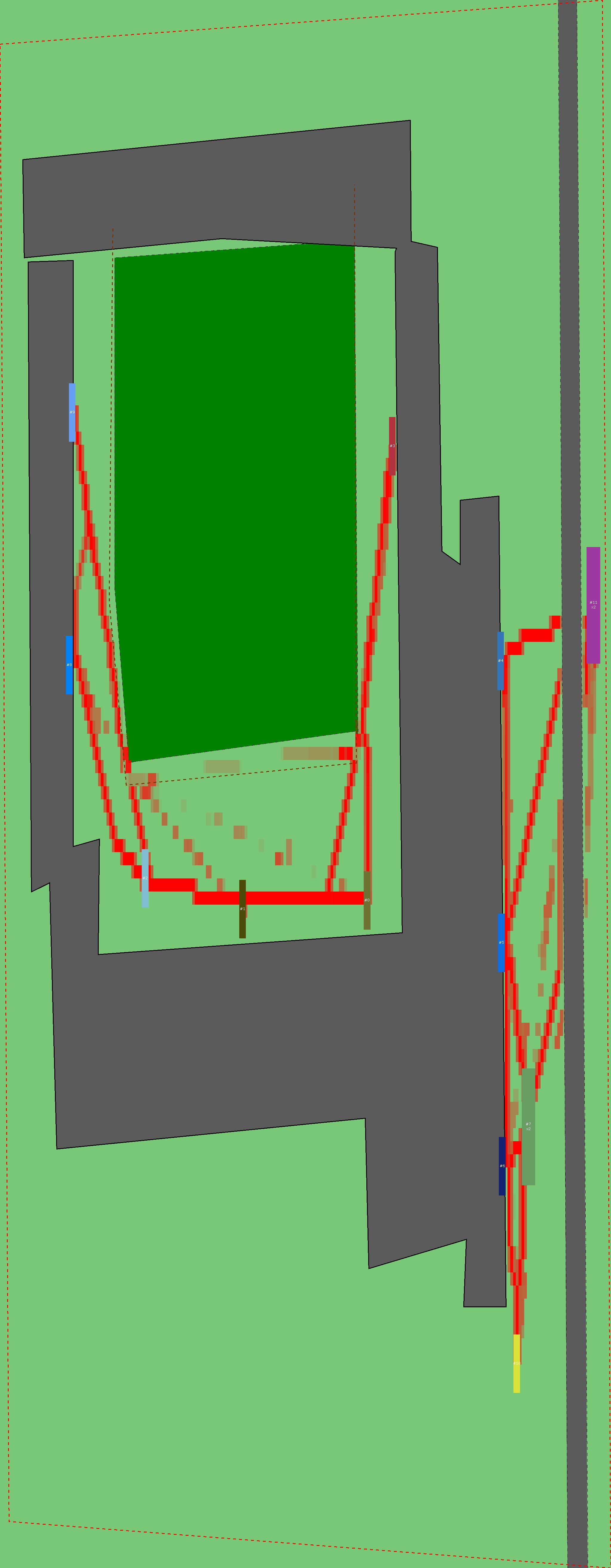 Красным цветом показаны места, где, вероятнее всего, появятся стихийные тропы..