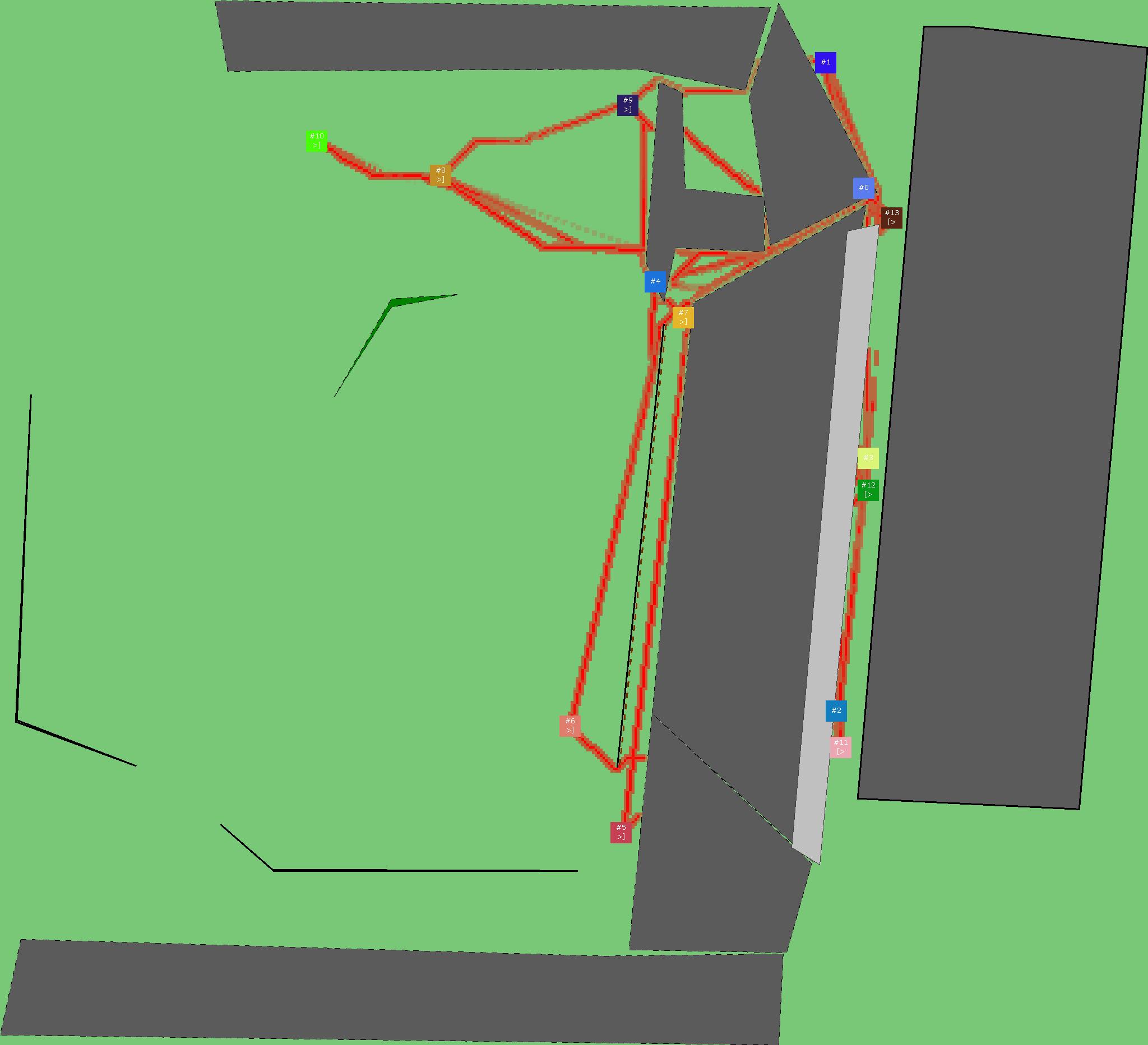 Красным цветом показаны места, где, вероятнее всего, появятся стихийные тропы..