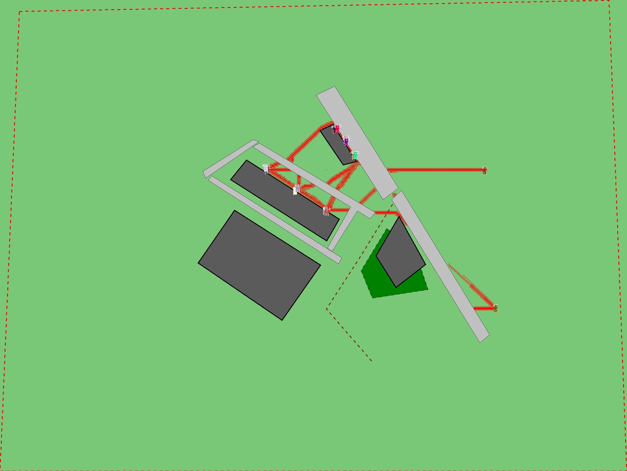 Красным цветом показаны места, где, вероятнее всего, появятся стихийные тропы..