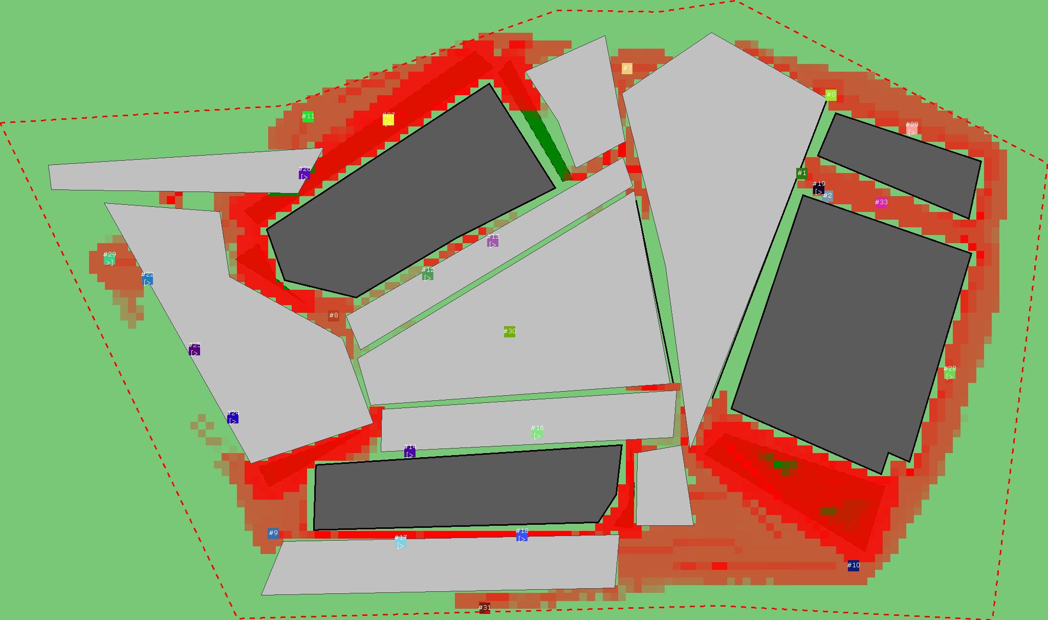 Красным цветом показаны места, где, вероятнее всего, появятся стихийные тропы..