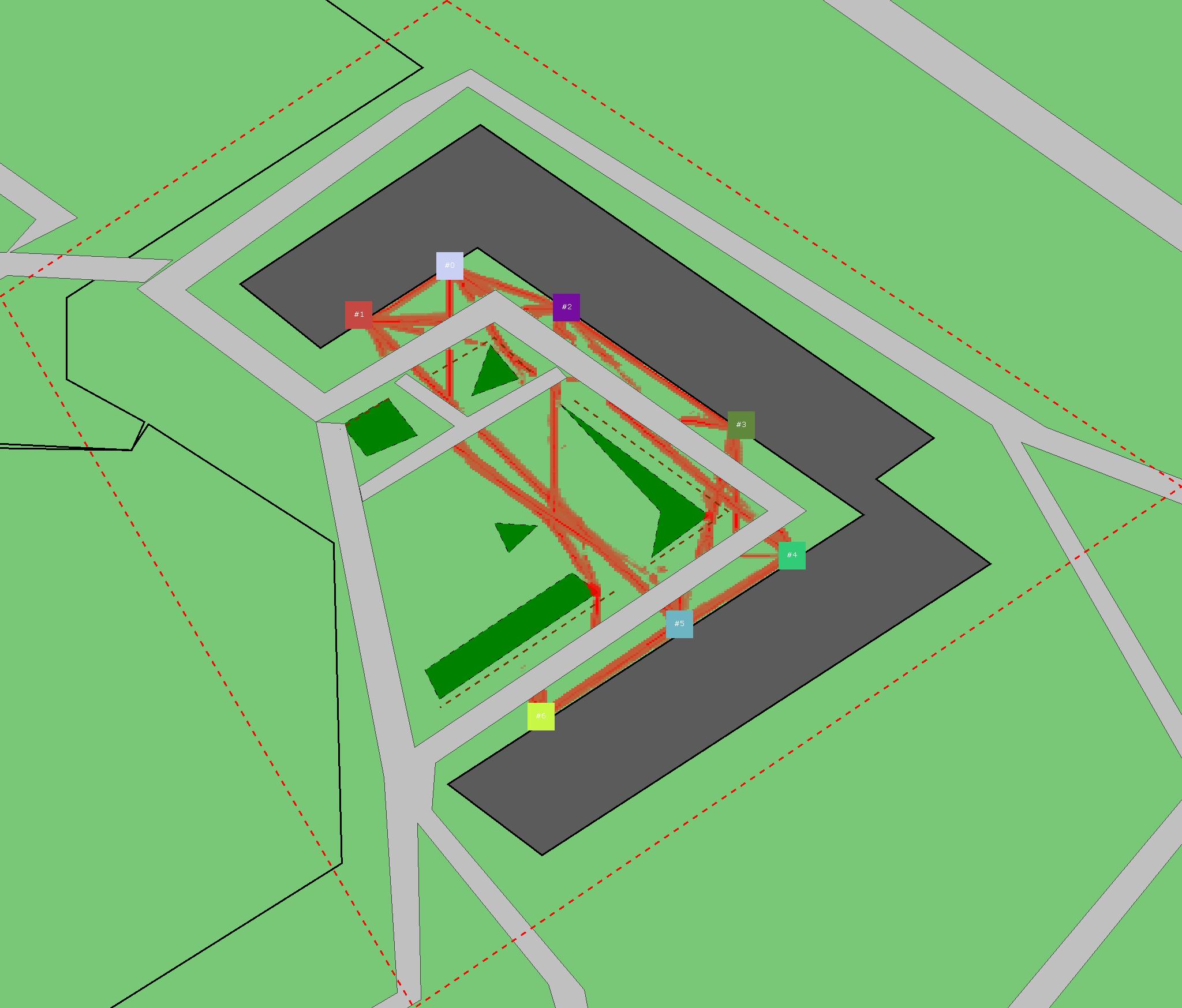Красным цветом показаны места, где, вероятнее всего, появятся стихийные тропы..