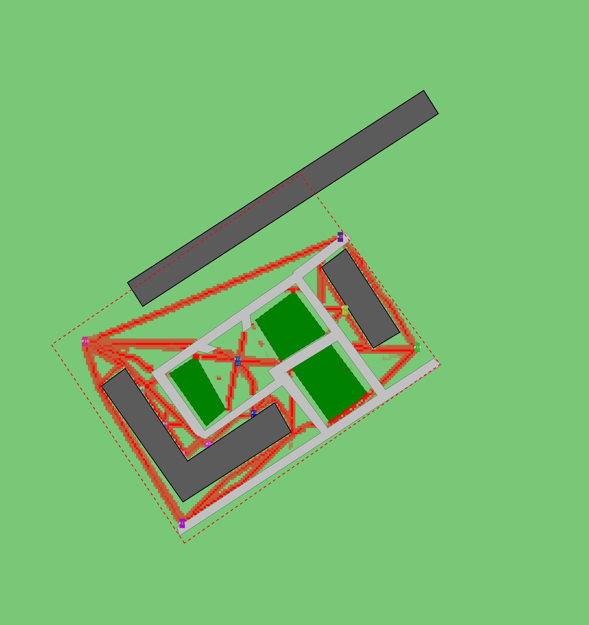 Красным цветом показаны места, где, вероятнее всего, появятся стихийные тропы..