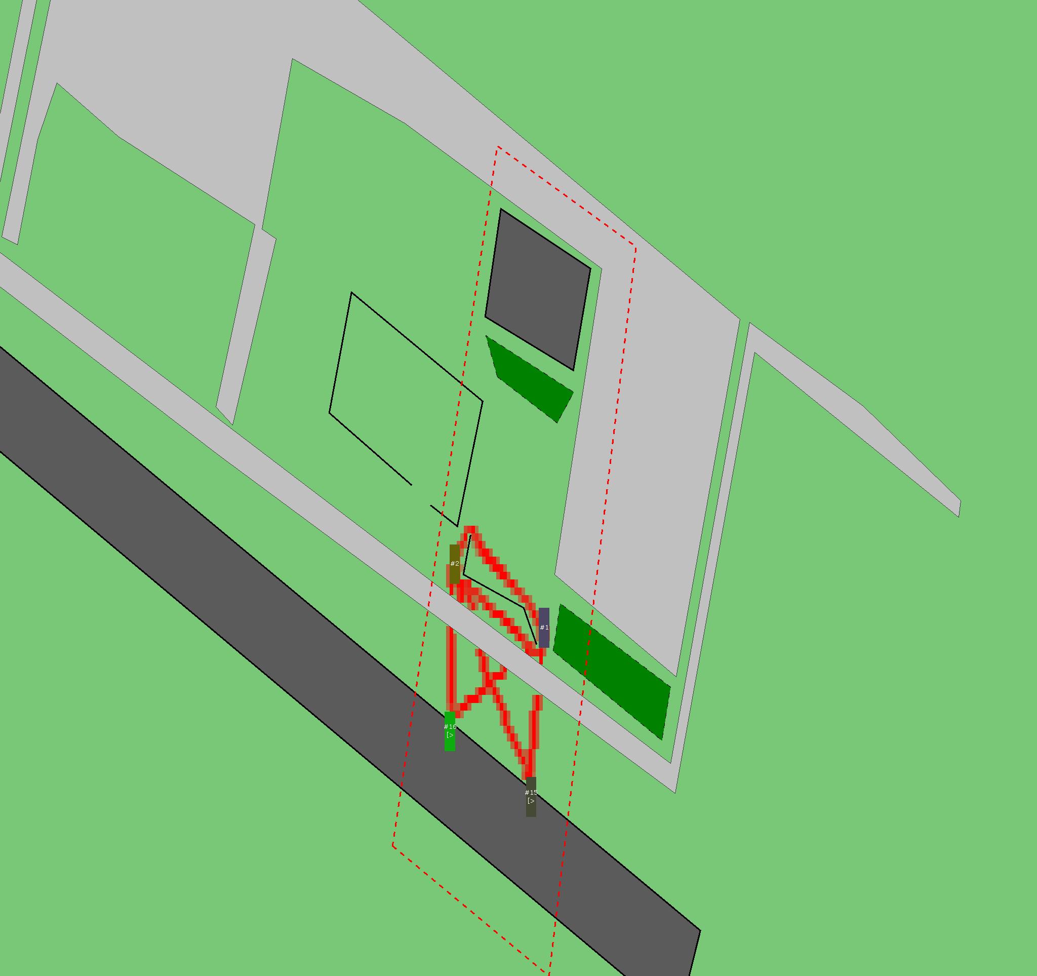 Красным цветом показаны места, где, вероятнее всего, появятся стихийные тропы..
