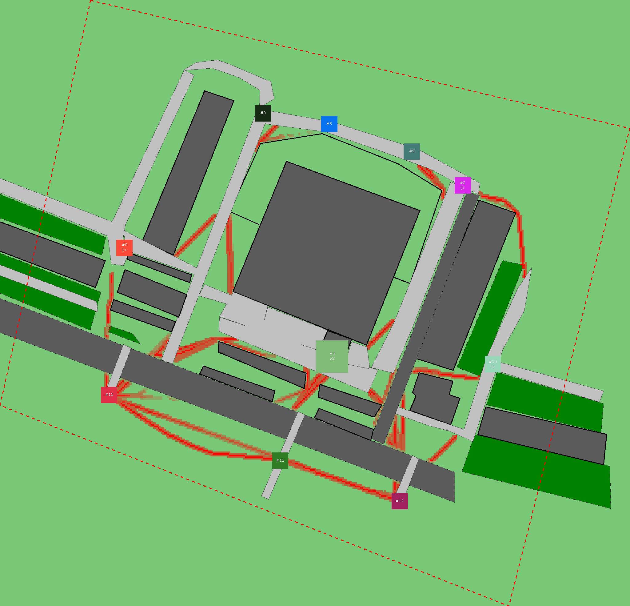 Красным цветом показаны места, где, вероятнее всего, появятся стихийные тропы..