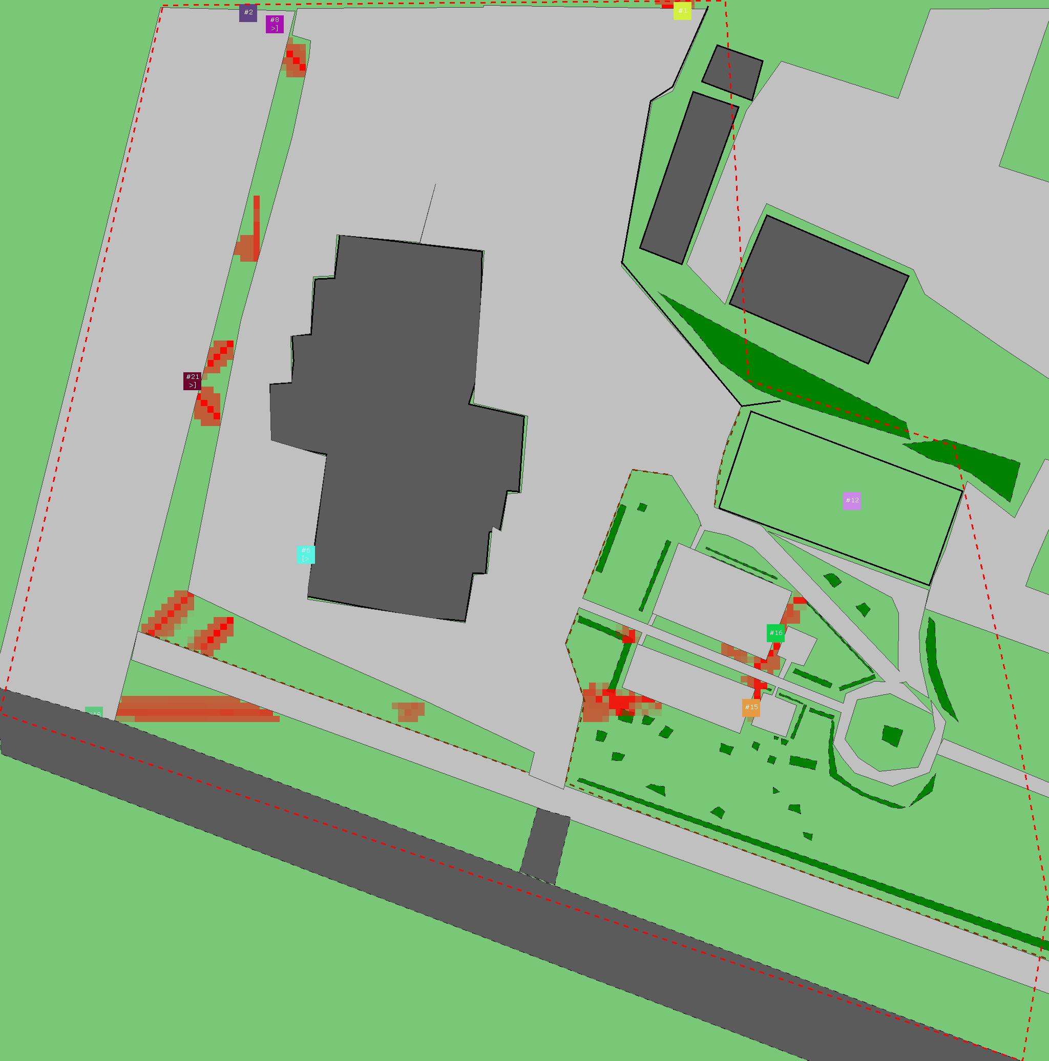Красным цветом показаны места, где, вероятнее всего, появятся стихийные тропы..