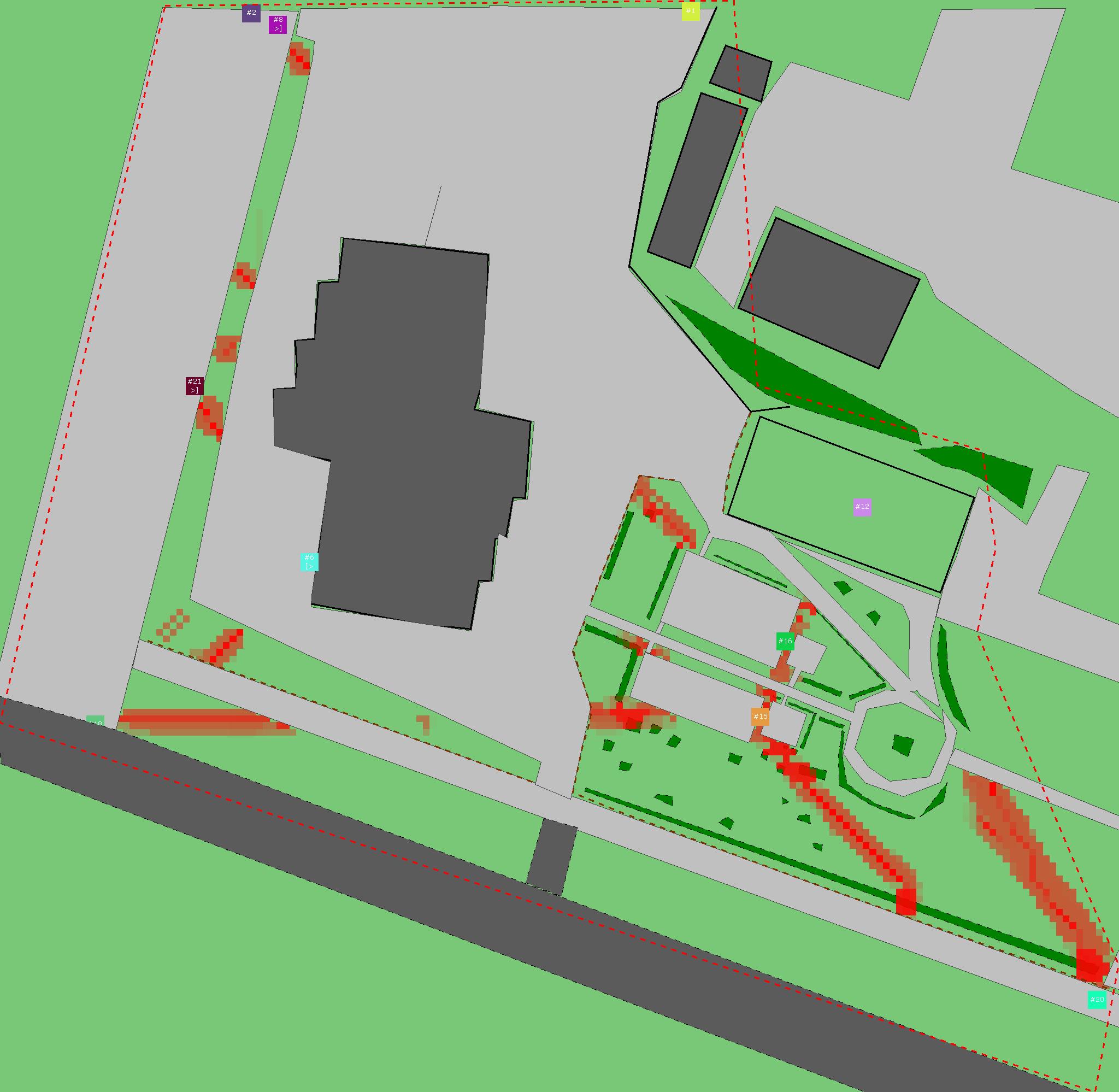 Красным цветом показаны места, где, вероятнее всего, появятся стихийные тропы..