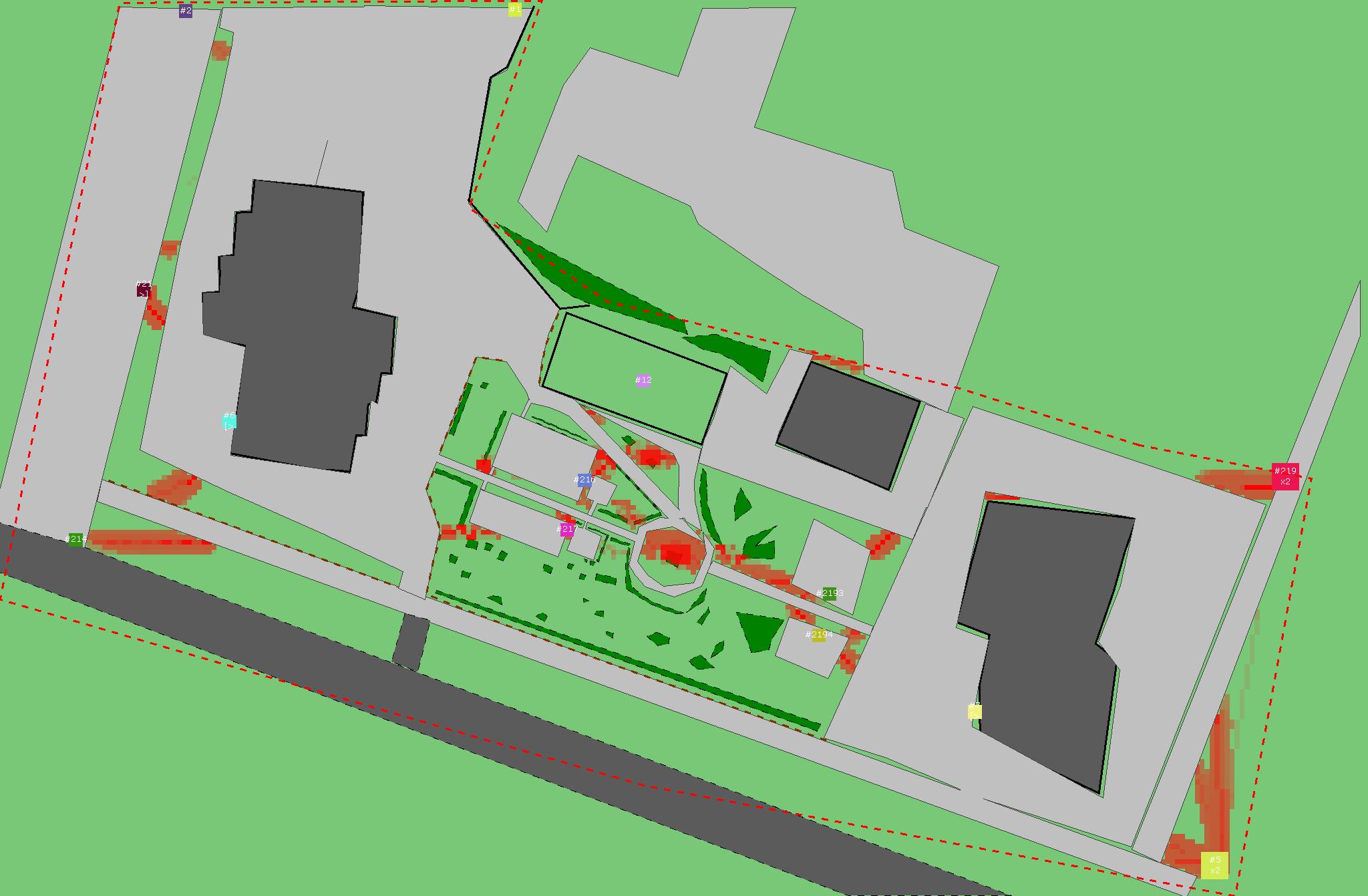 Красным цветом показаны места, где, вероятнее всего, появятся стихийные тропы..