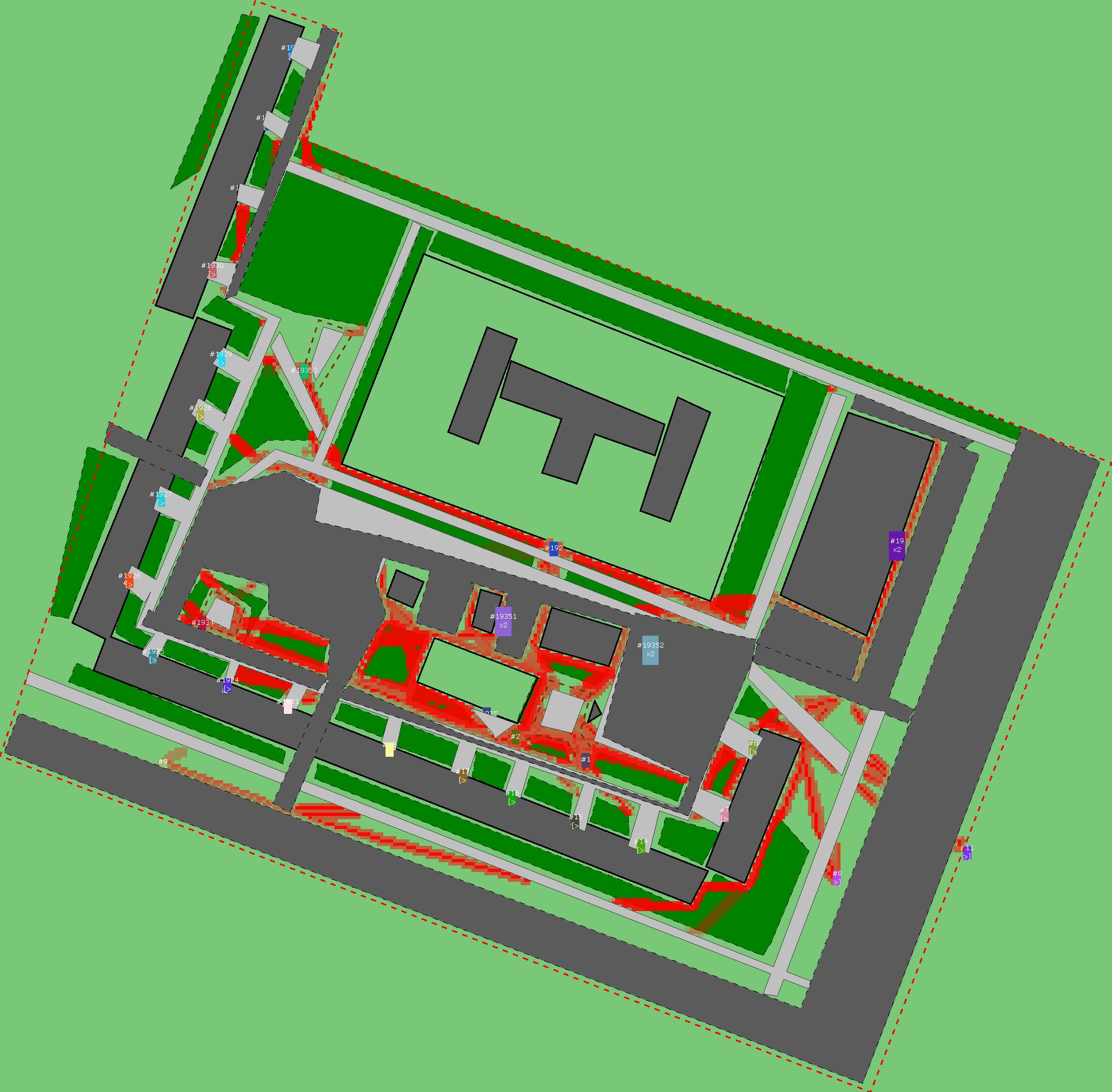 Красным цветом показаны места, где, вероятнее всего, появятся стихийные тропы..