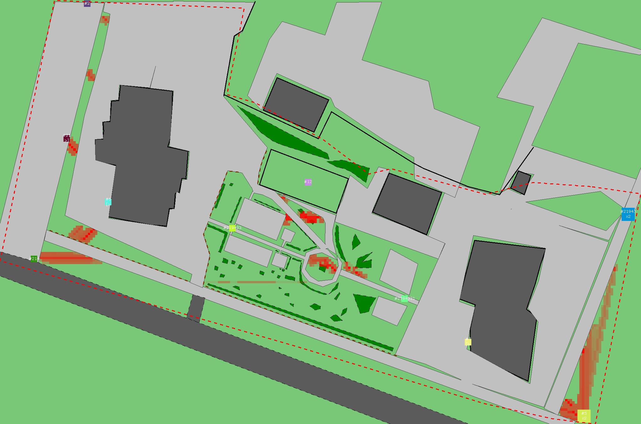 Красным цветом показаны места, где, вероятнее всего, появятся стихийные тропы..