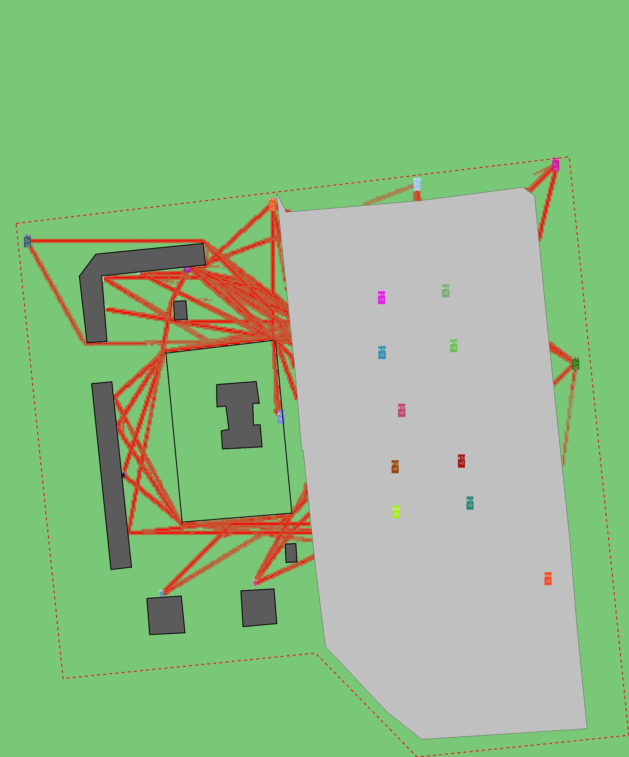 Красным цветом показаны места, где, вероятнее всего, появятся стихийные тропы..