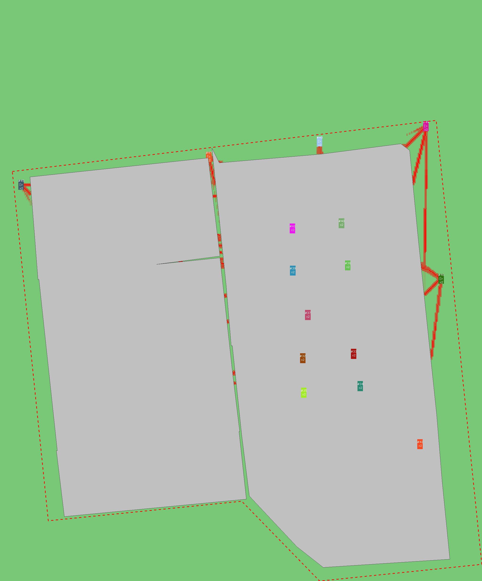 Красным цветом показаны места, где, вероятнее всего, появятся стихийные тропы..