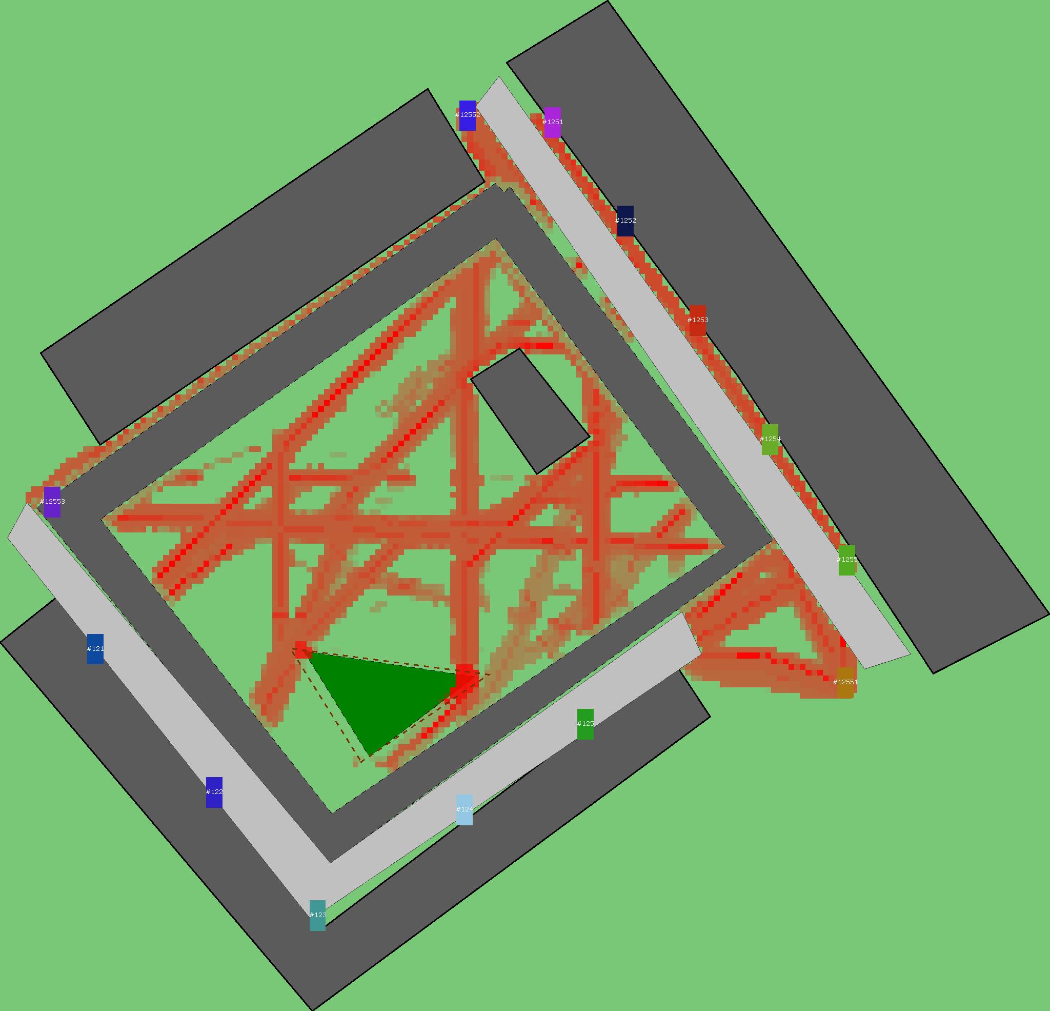 Красным цветом показаны места, где, вероятнее всего, появятся стихийные тропы..