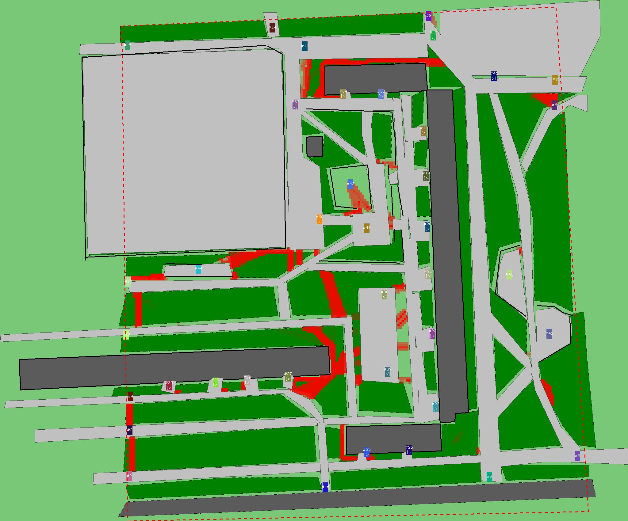 Красным цветом показаны места, где, вероятнее всего, появятся стихийные тропы..