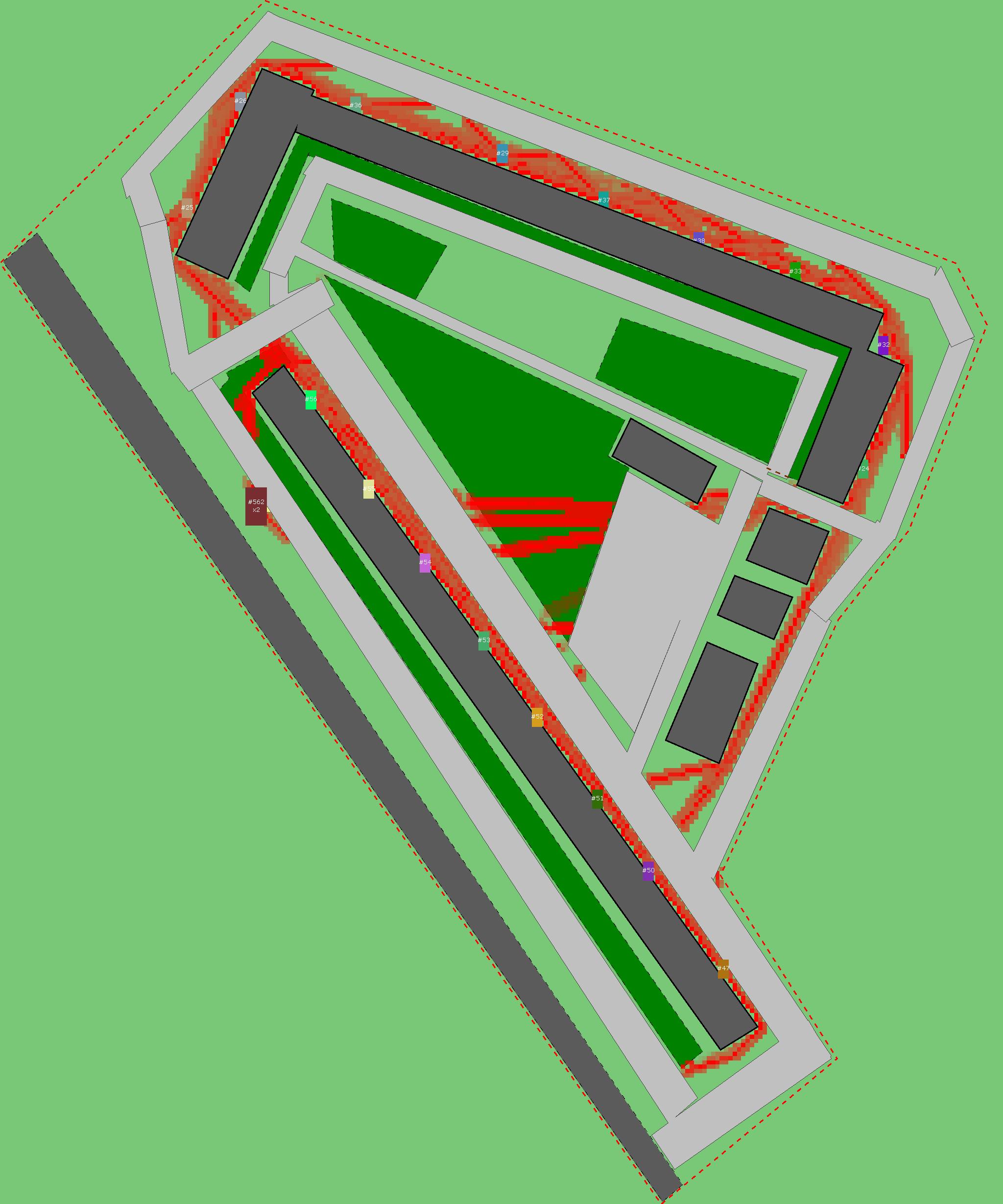 Красным цветом показаны места, где, вероятнее всего, появятся стихийные тропы..