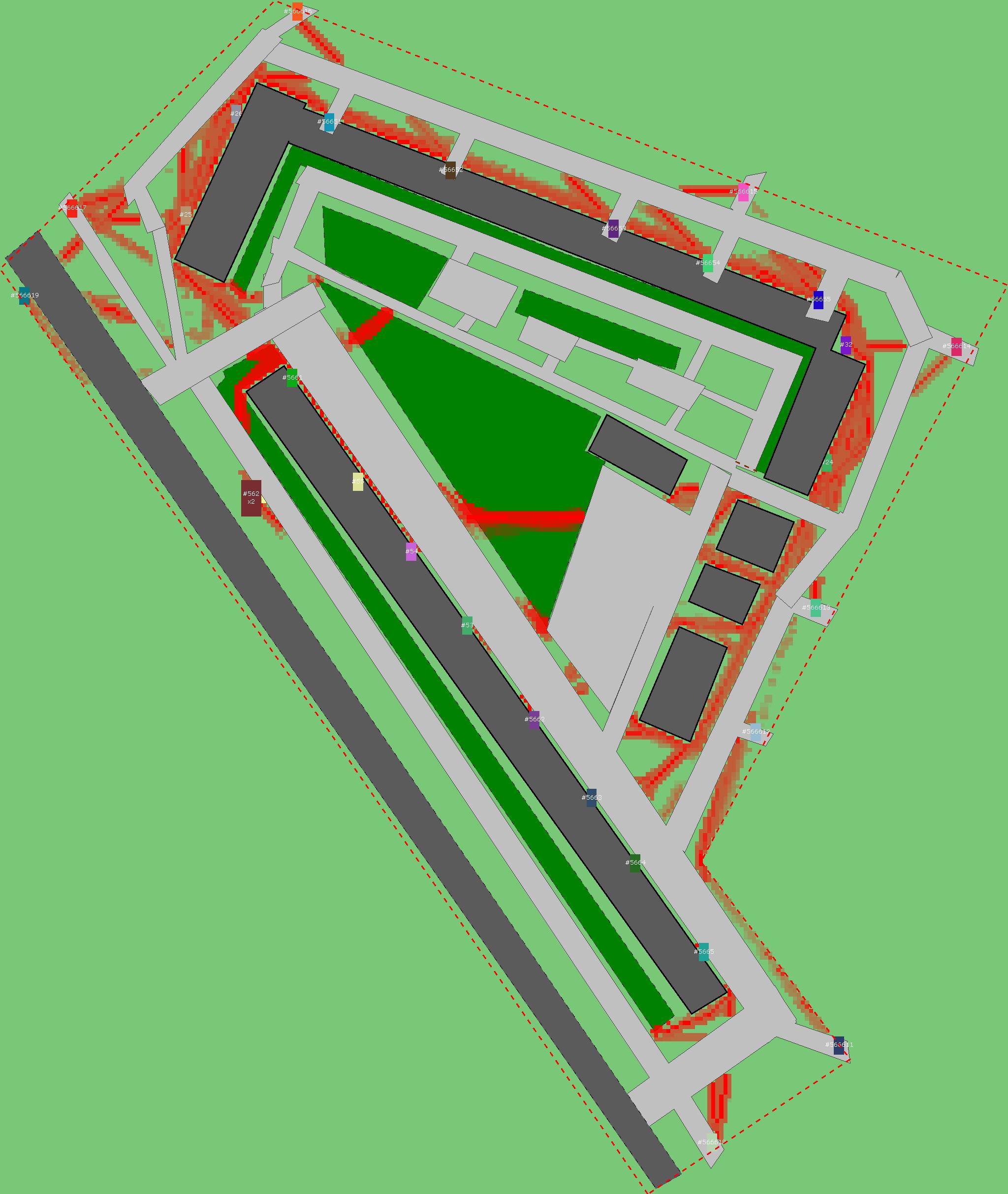 Красным цветом показаны места, где, вероятнее всего, появятся стихийные тропы..