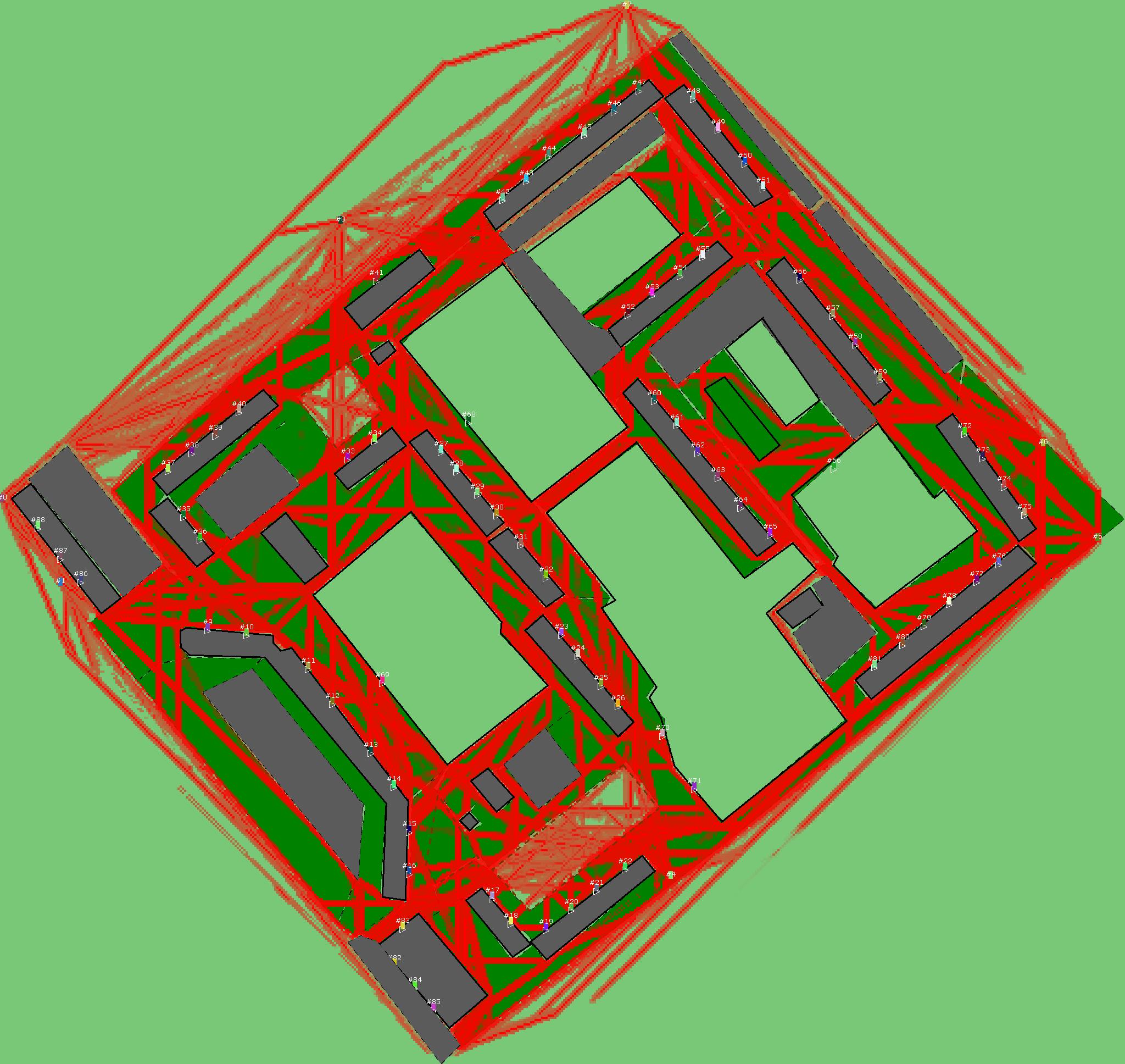 Красным цветом показаны места, где, вероятнее всего, появятся стихийные тропы..