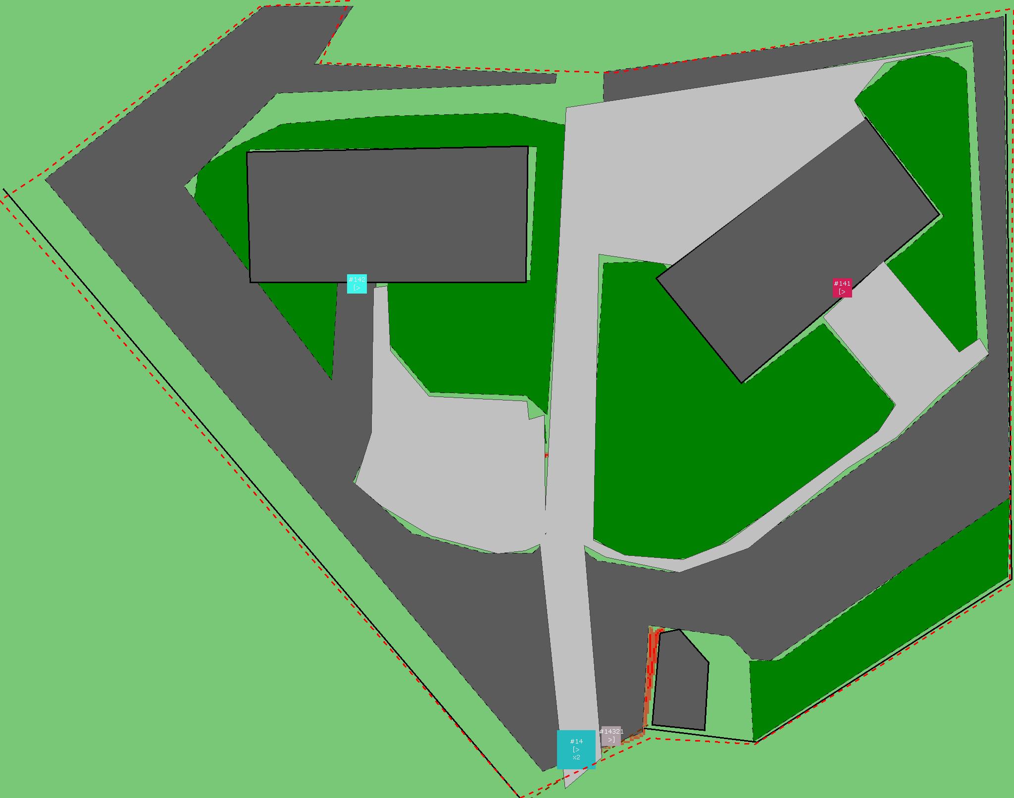 Красным цветом показаны места, где, вероятнее всего, появятся стихийные тропы..
