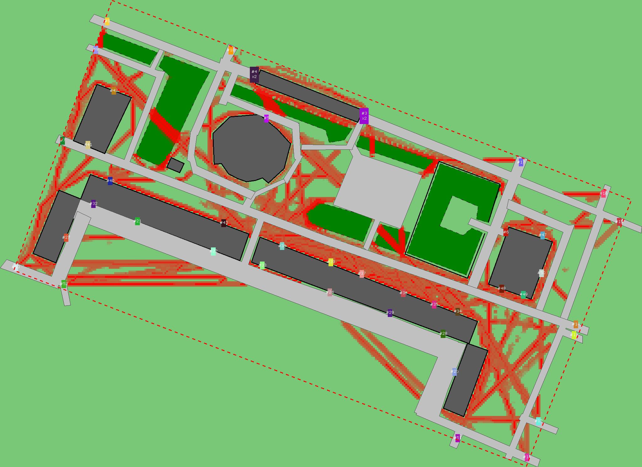 Красным цветом показаны места, где, вероятнее всего, появятся стихийные тропы..