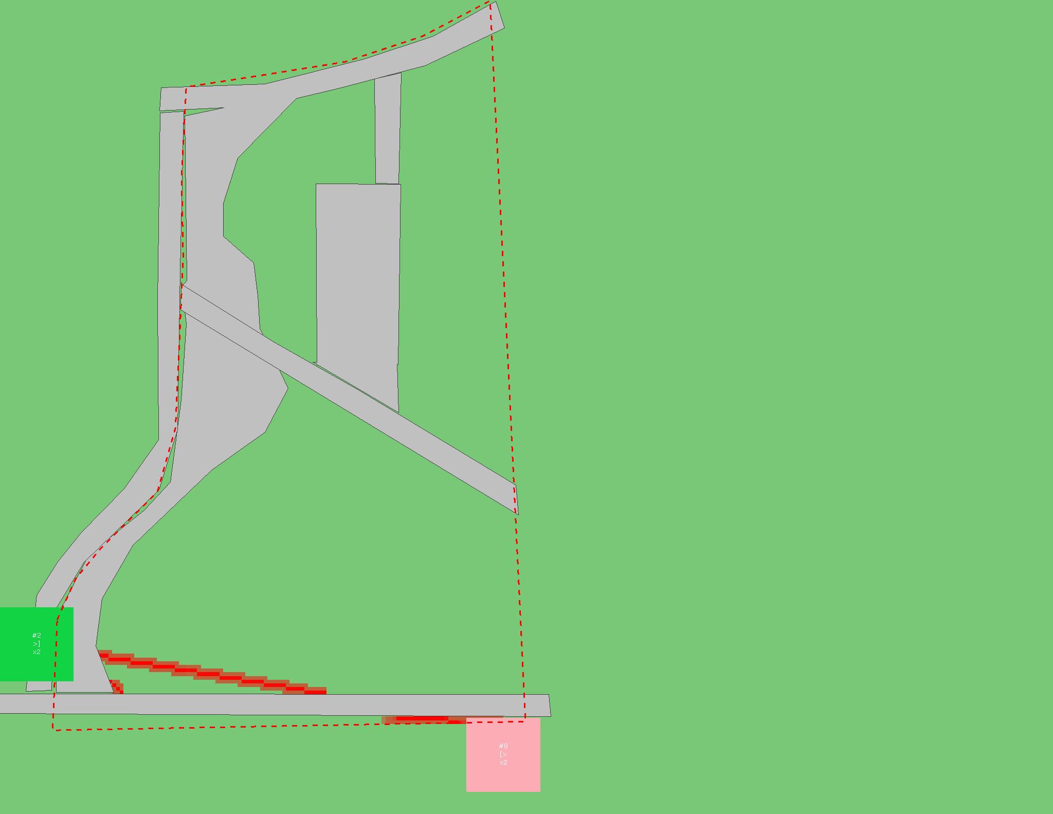 Красным цветом показаны места, где, вероятнее всего, появятся стихийные тропы..