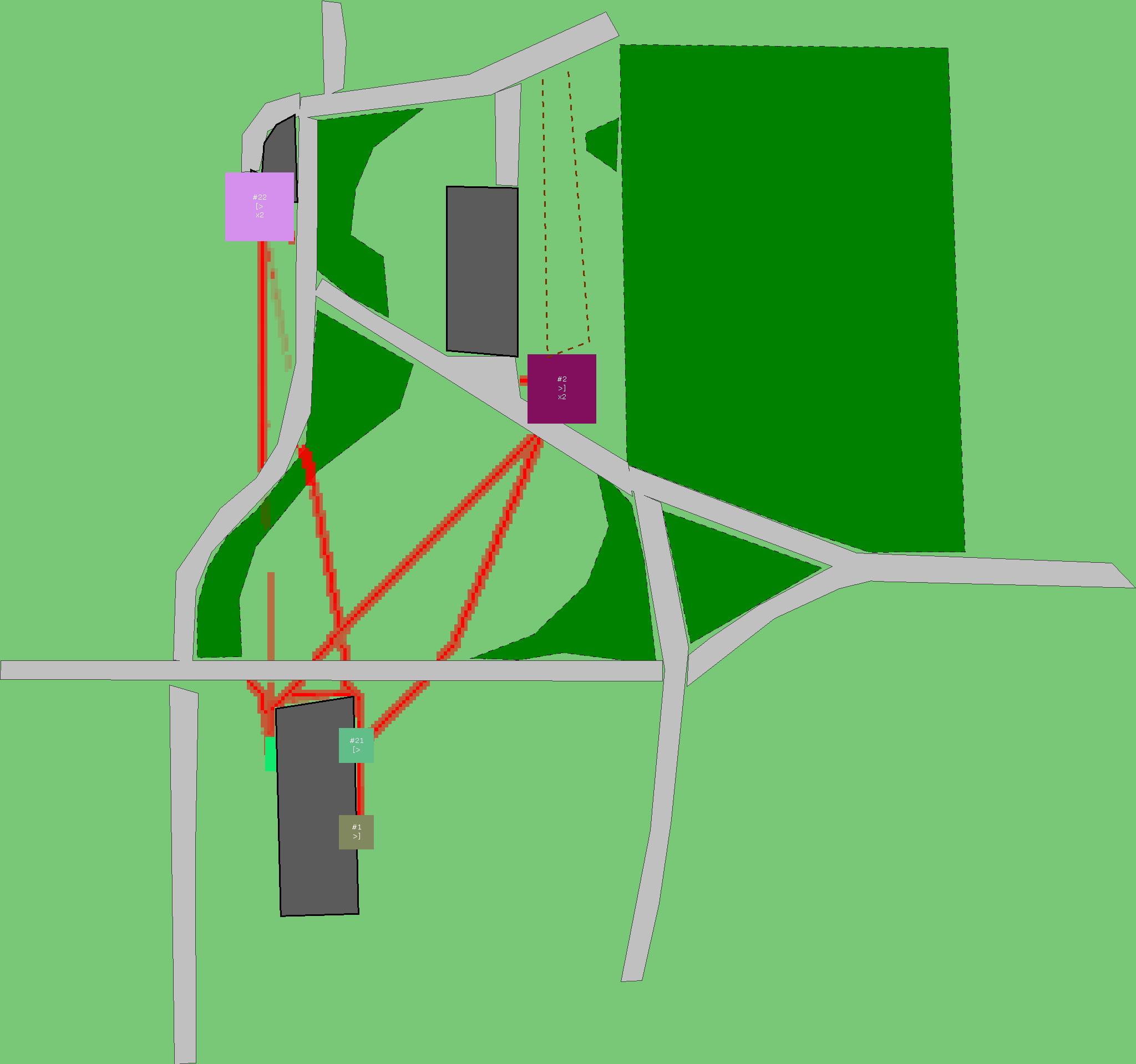 Красным цветом показаны места, где, вероятнее всего, появятся стихийные тропы..