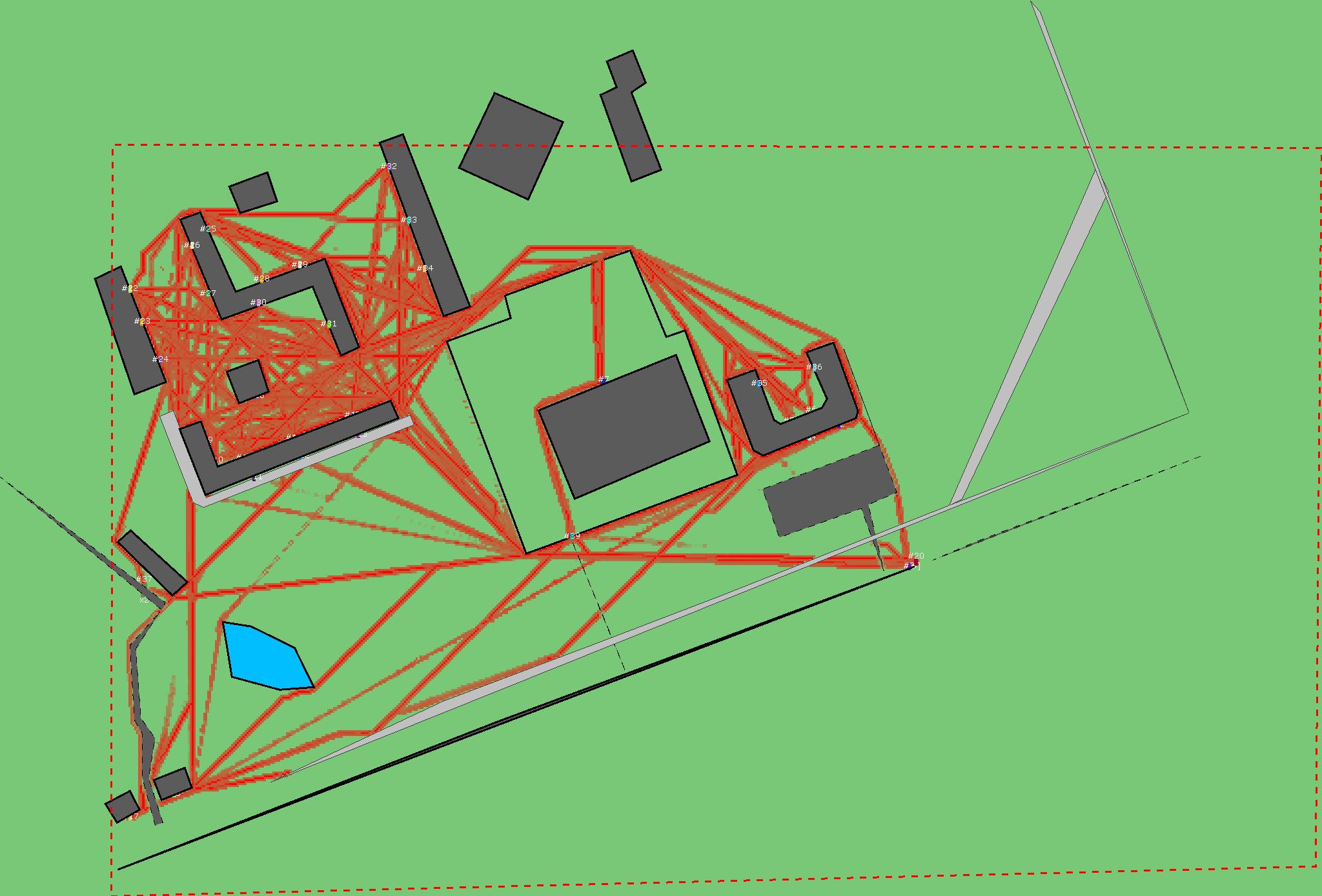 Красным цветом показаны места, где, вероятнее всего, появятся стихийные тропы..