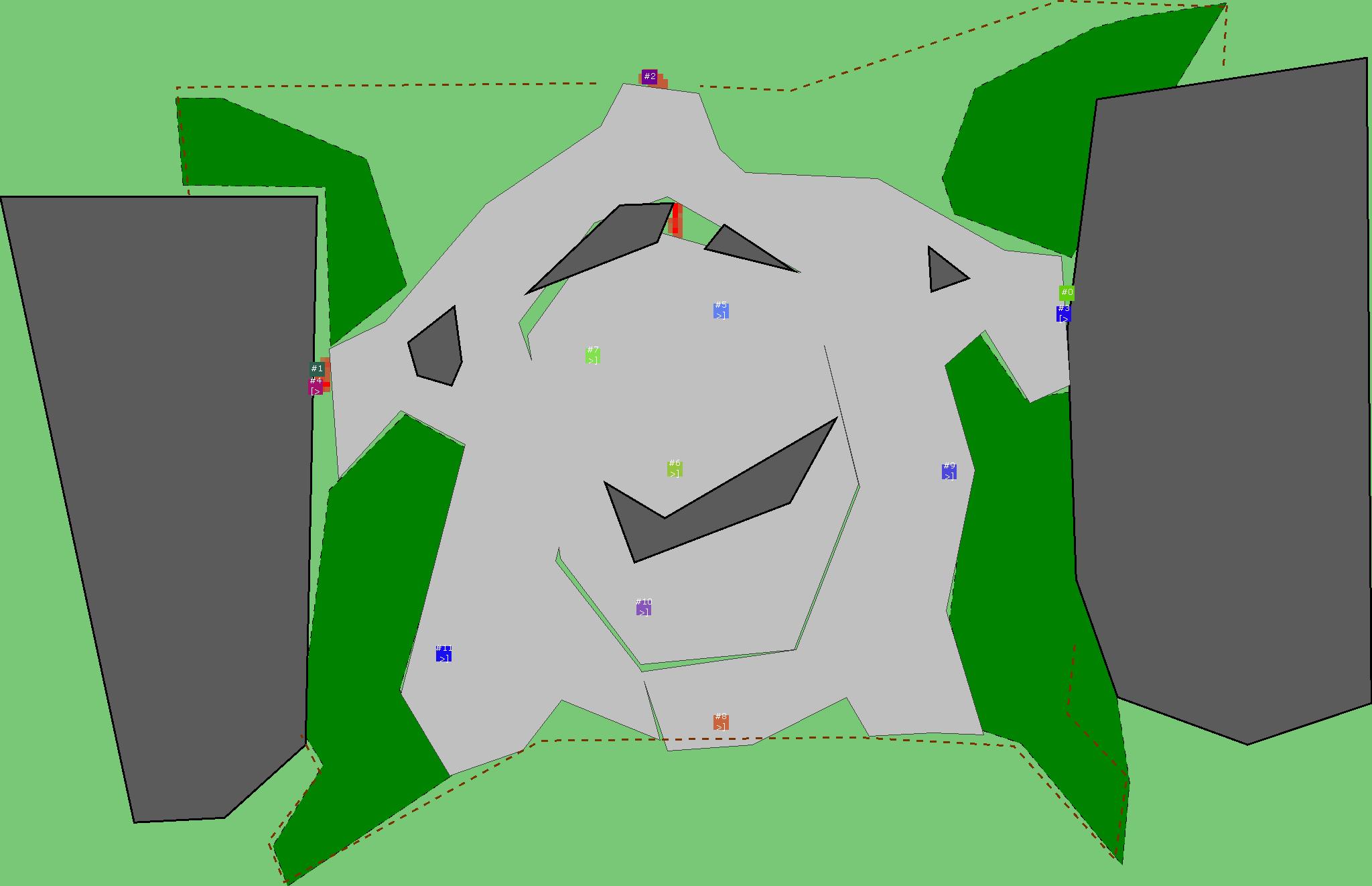 Красным цветом показаны места, где, вероятнее всего, появятся стихийные тропы..
