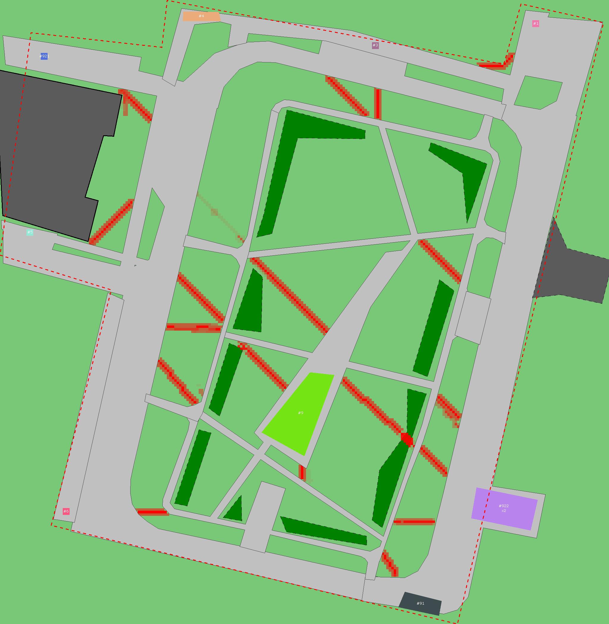 Красным цветом показаны места, где, вероятнее всего, появятся стихийные тропы..