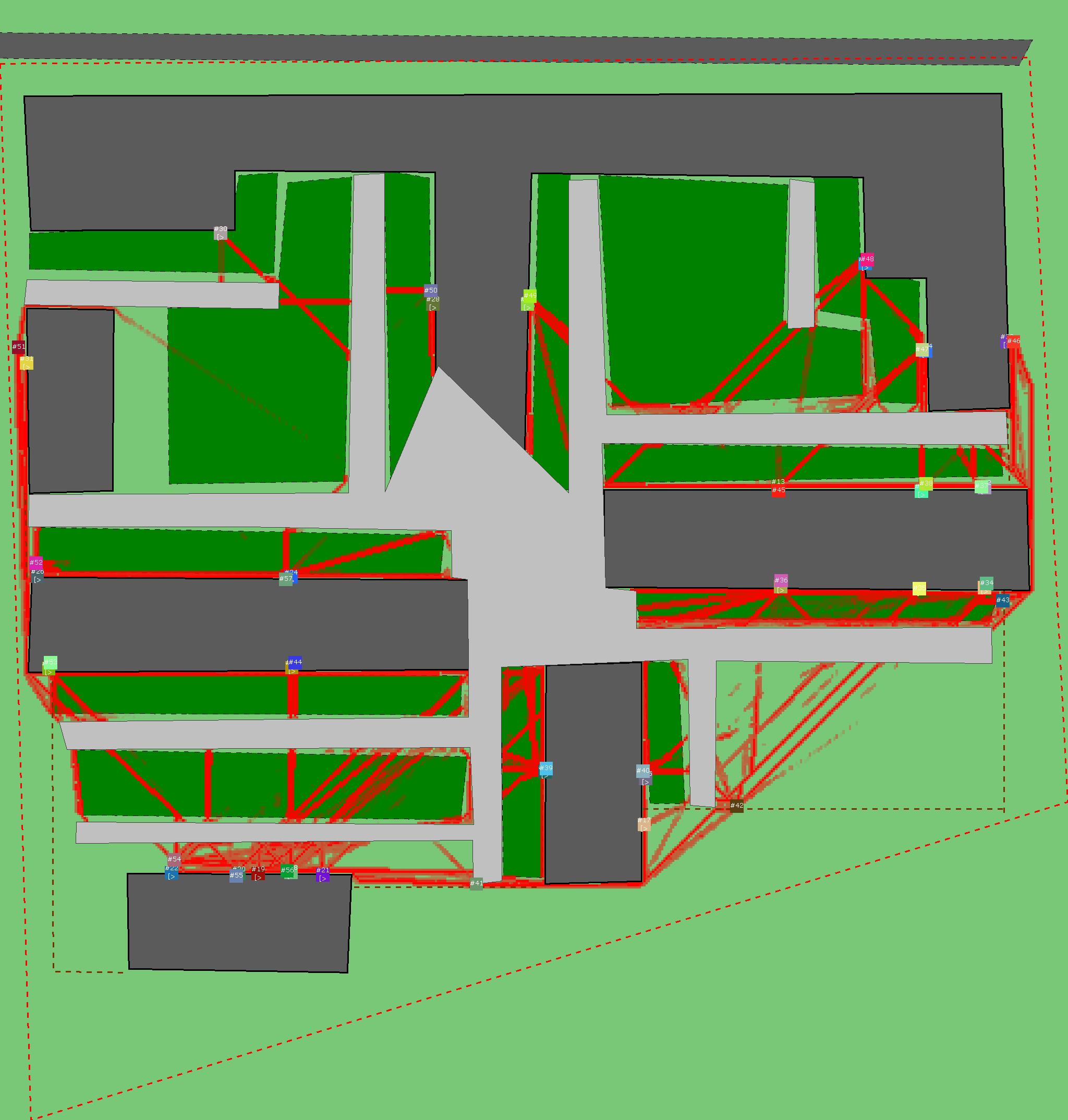 Красным цветом показаны места, где, вероятнее всего, появятся стихийные тропы..