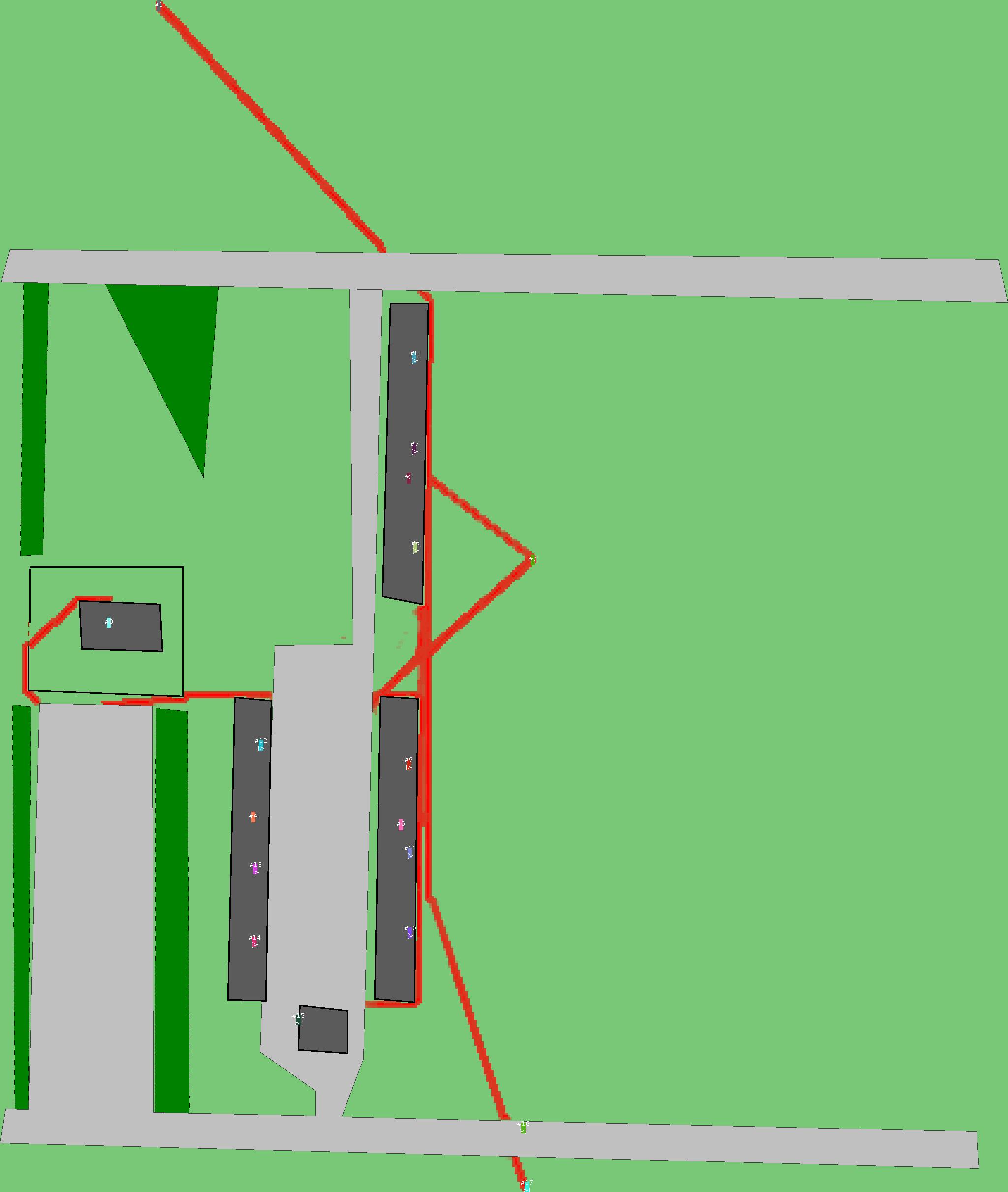 Красным цветом показаны места, где, вероятнее всего, появятся стихийные тропы..