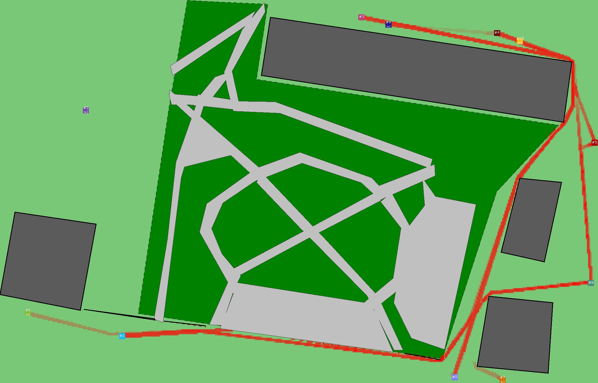 Красным цветом показаны места, где, вероятнее всего, появятся стихийные тропы..