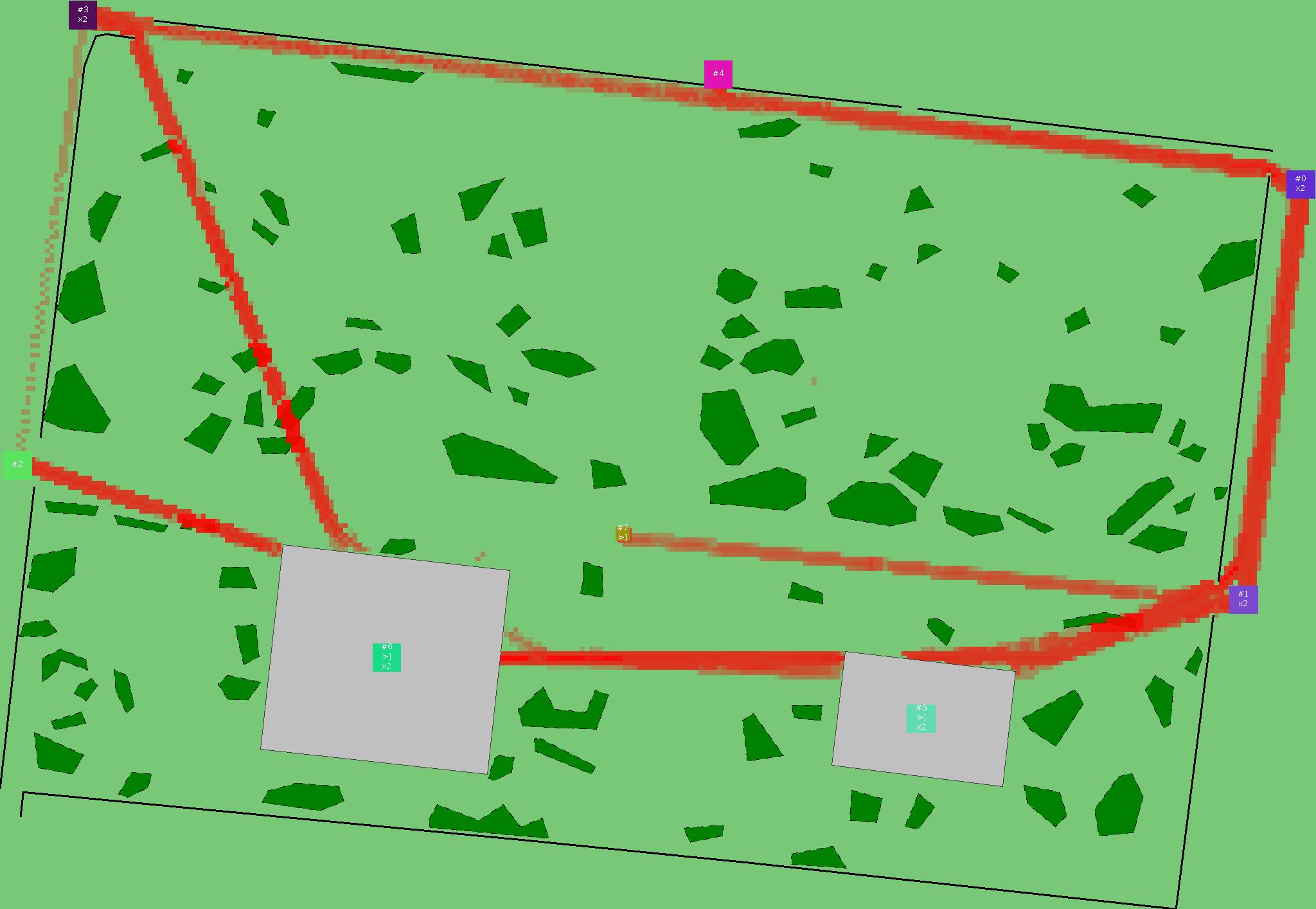 Красным цветом показаны места, где, вероятнее всего, появятся стихийные тропы..
