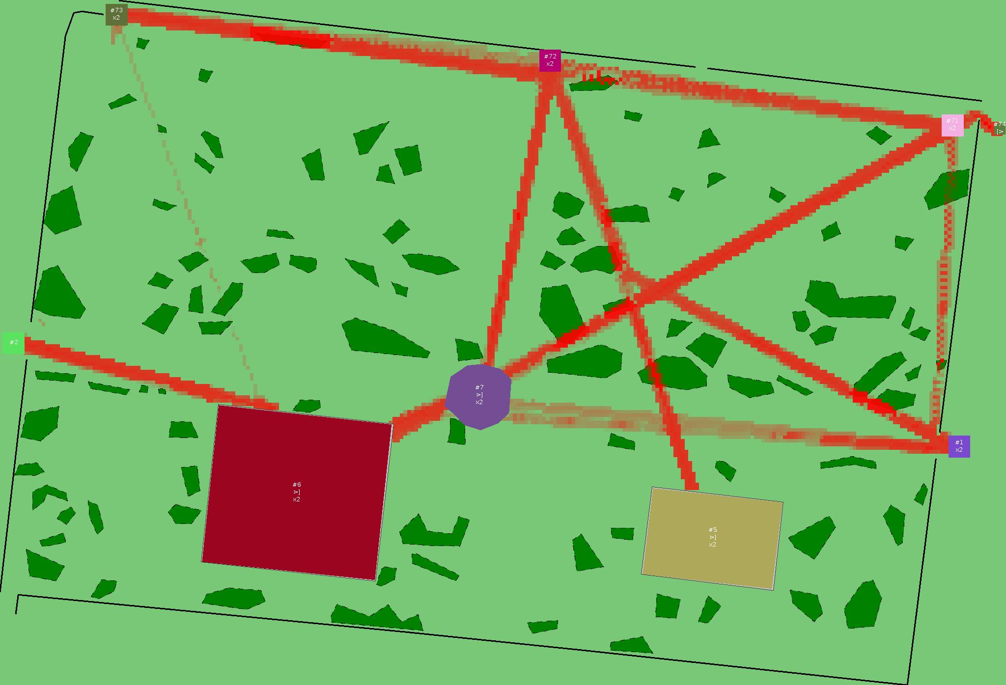 Красным цветом показаны места, где, вероятнее всего, появятся стихийные тропы..