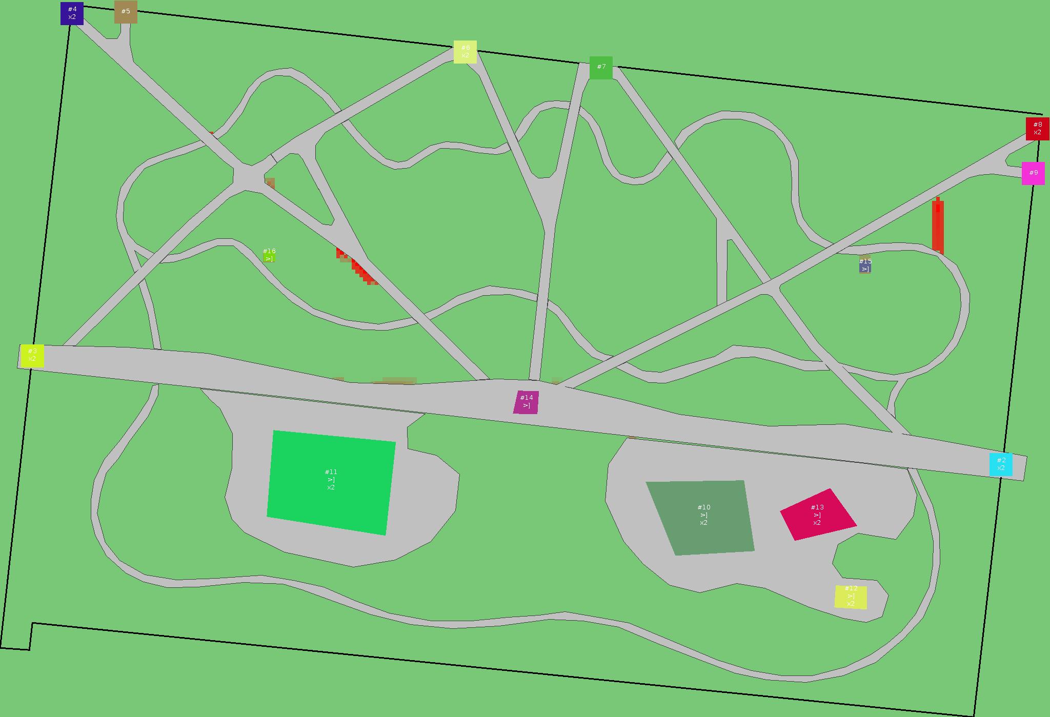 Красным цветом показаны места, где, вероятнее всего, появятся стихийные тропы..