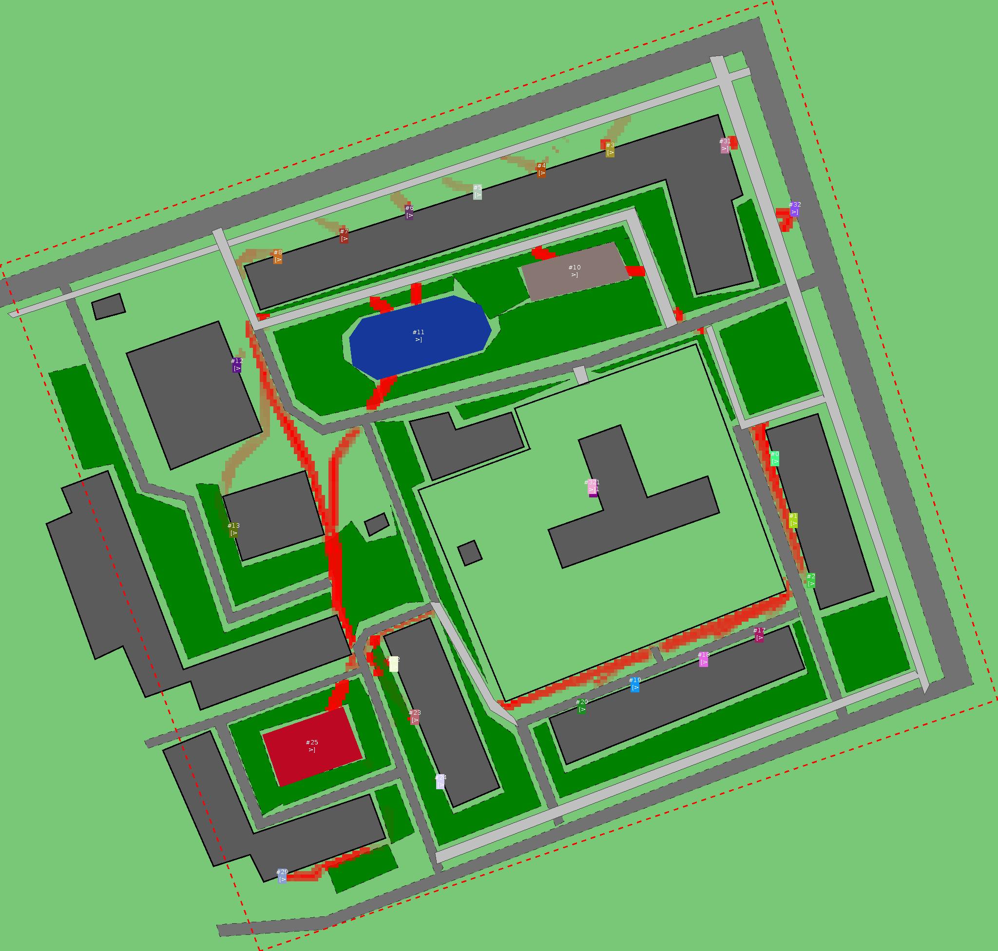 Красным цветом показаны места, где, вероятнее всего, появятся стихийные тропы..