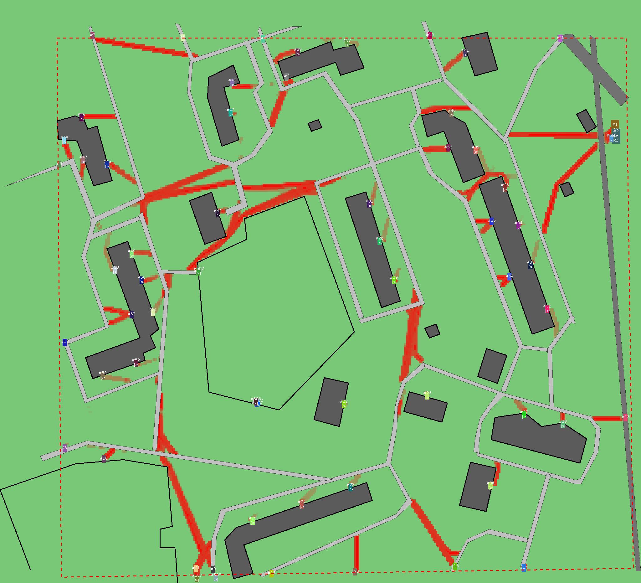 Красным цветом показаны места, где, вероятнее всего, появятся стихийные тропы..
