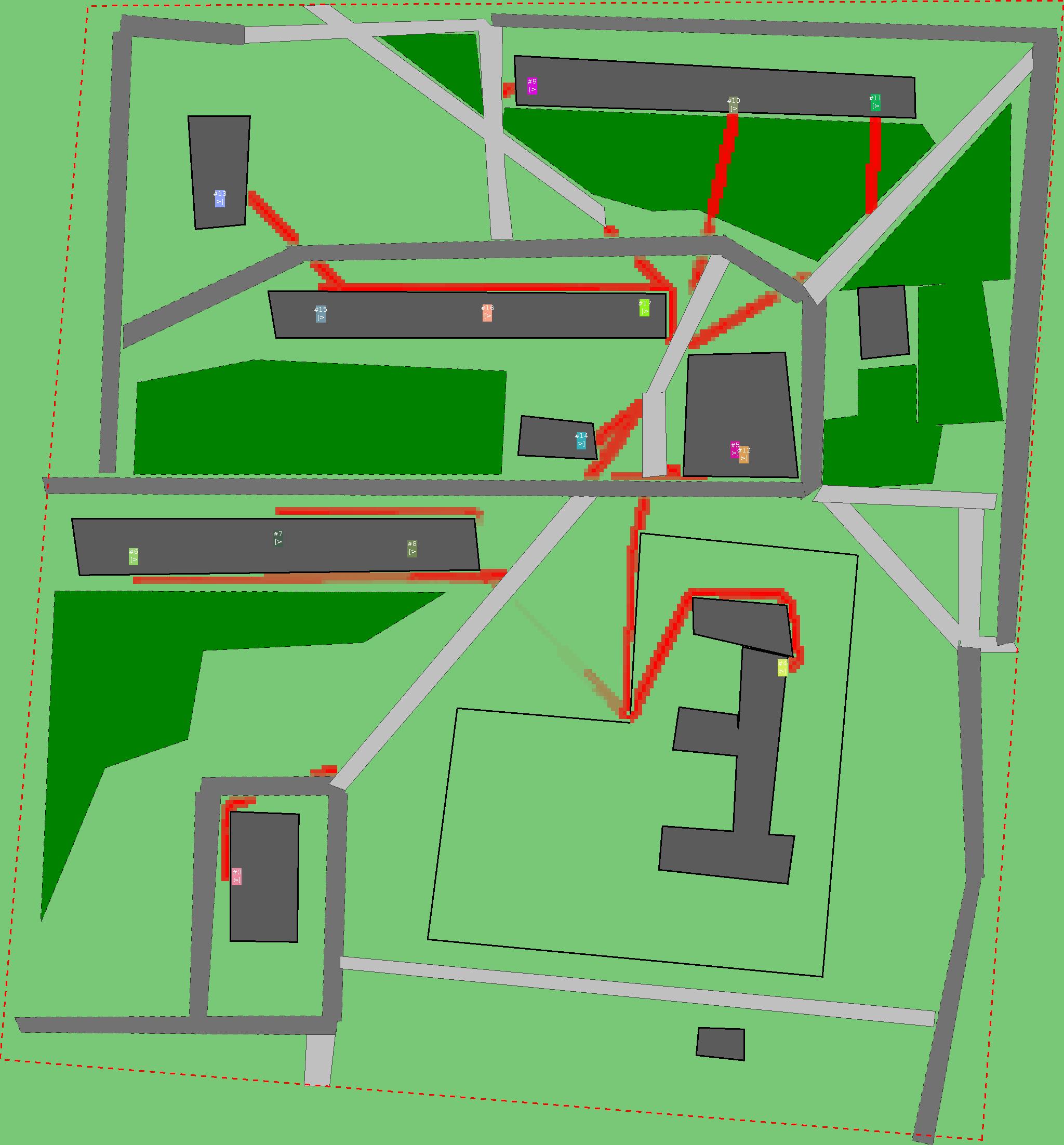 Красным цветом показаны места, где, вероятнее всего, появятся стихийные тропы..