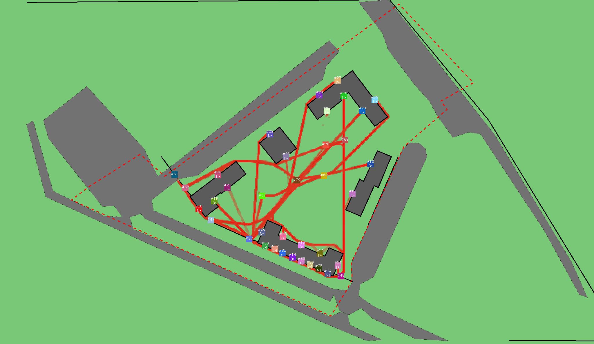 Красным цветом показаны места, где, вероятнее всего, появятся стихийные тропы..