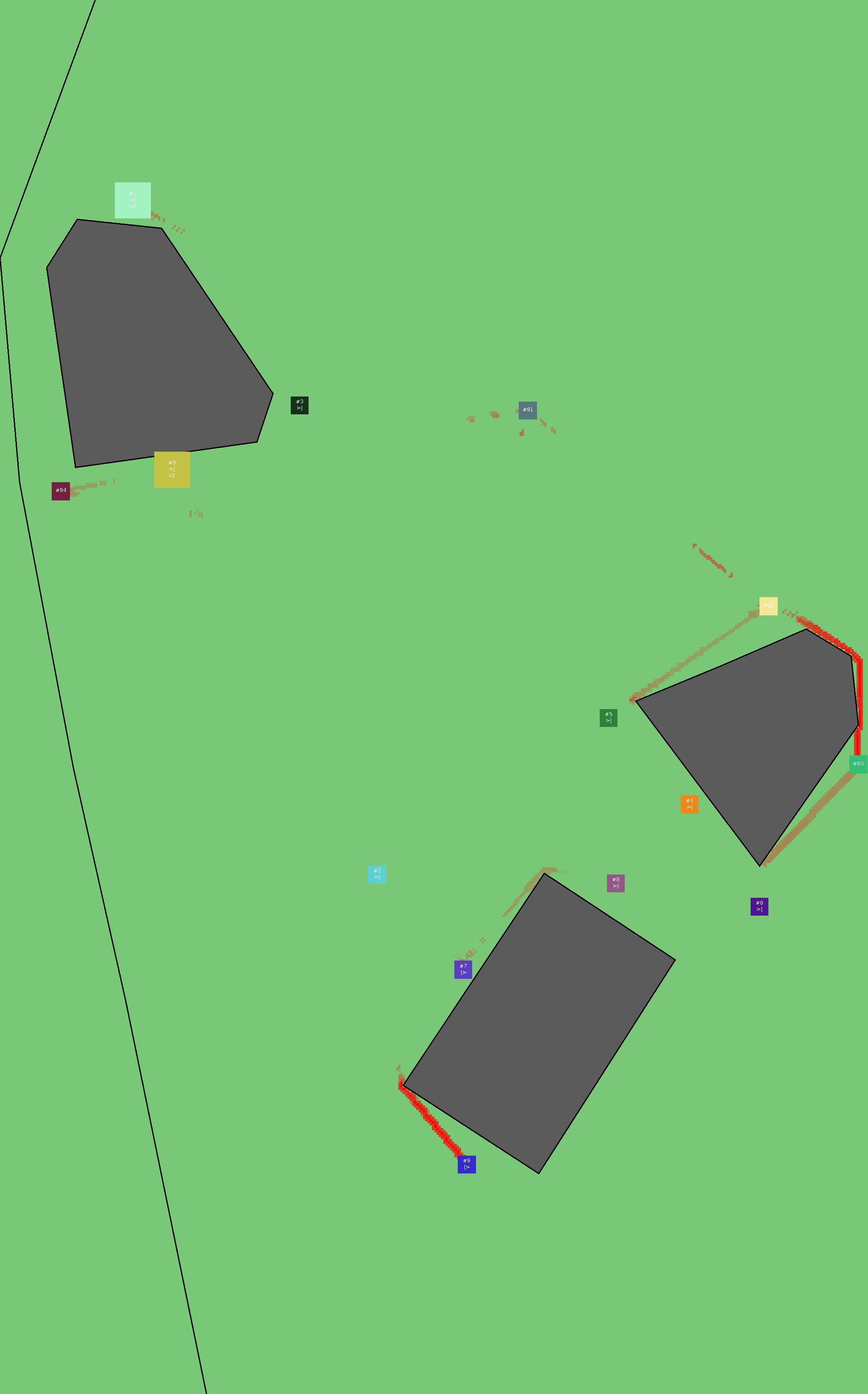 Красным цветом показаны места, где, вероятнее всего, появятся стихийные тропы..