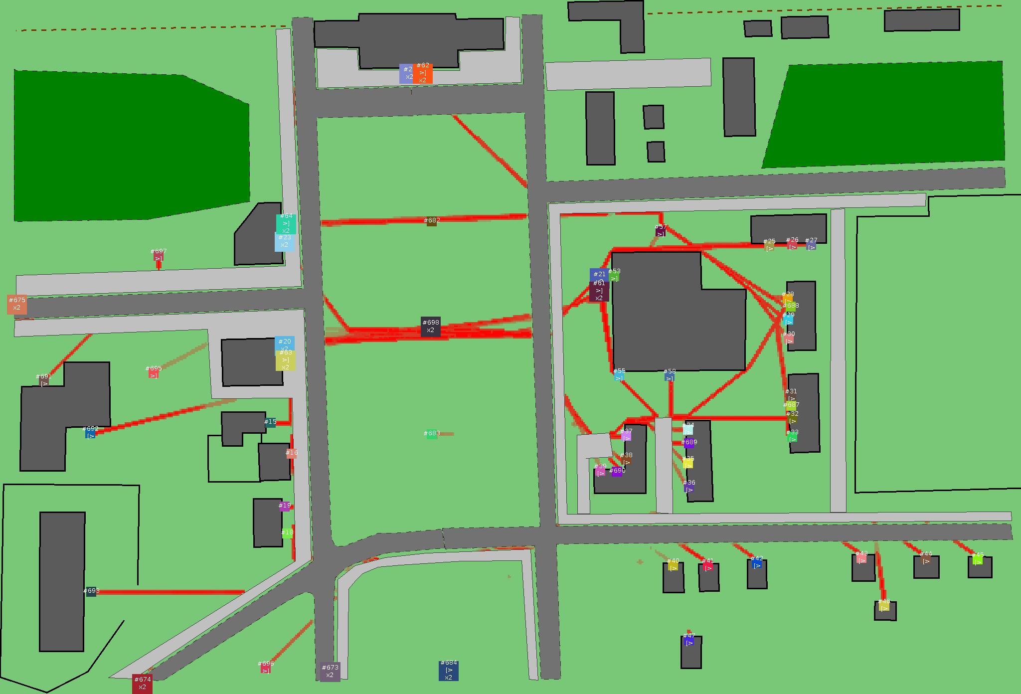 Красным цветом показаны места, где, вероятнее всего, появятся стихийные тропы..