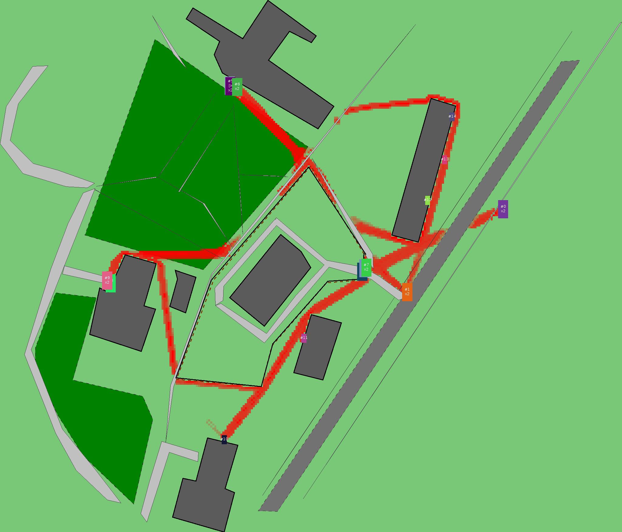 Красным цветом показаны места, где, вероятнее всего, появятся стихийные тропы..