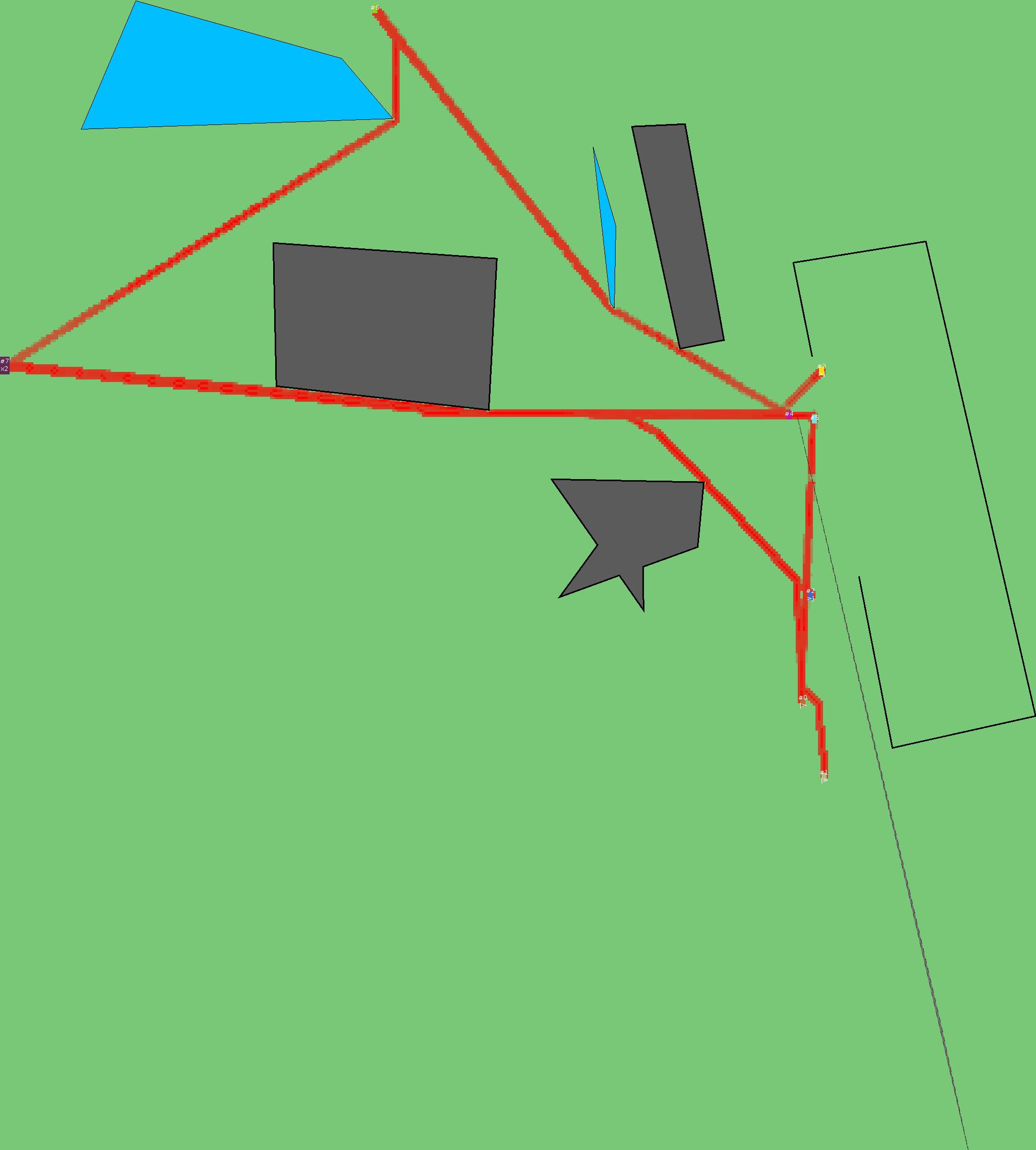 Красным цветом показаны места, где, вероятнее всего, появятся стихийные тропы..