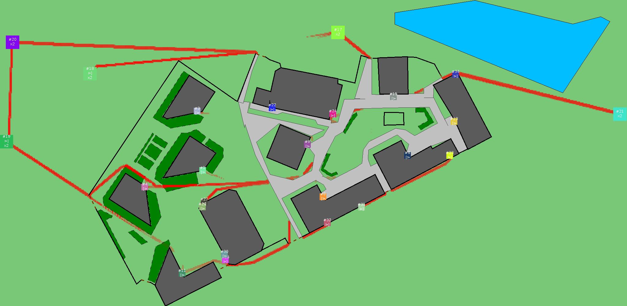 Красным цветом показаны места, где, вероятнее всего, появятся стихийные тропы..
