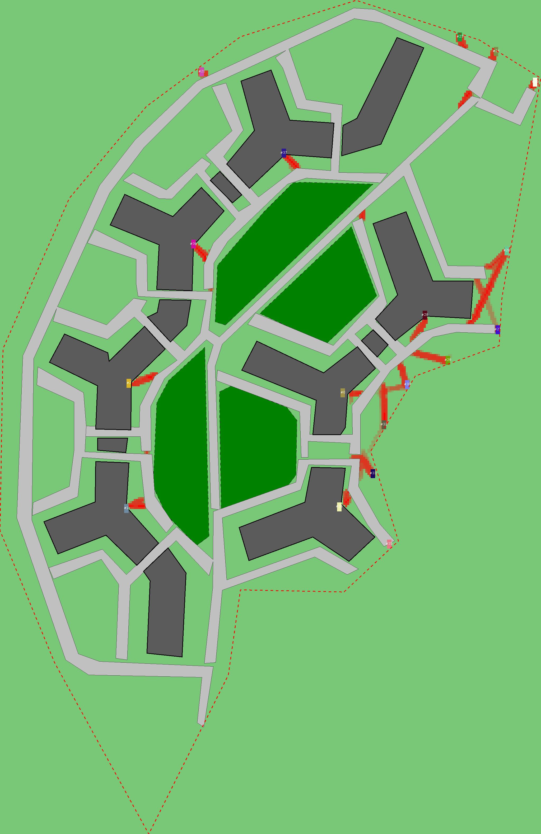Красным цветом показаны места, где, вероятнее всего, появятся стихийные тропы..