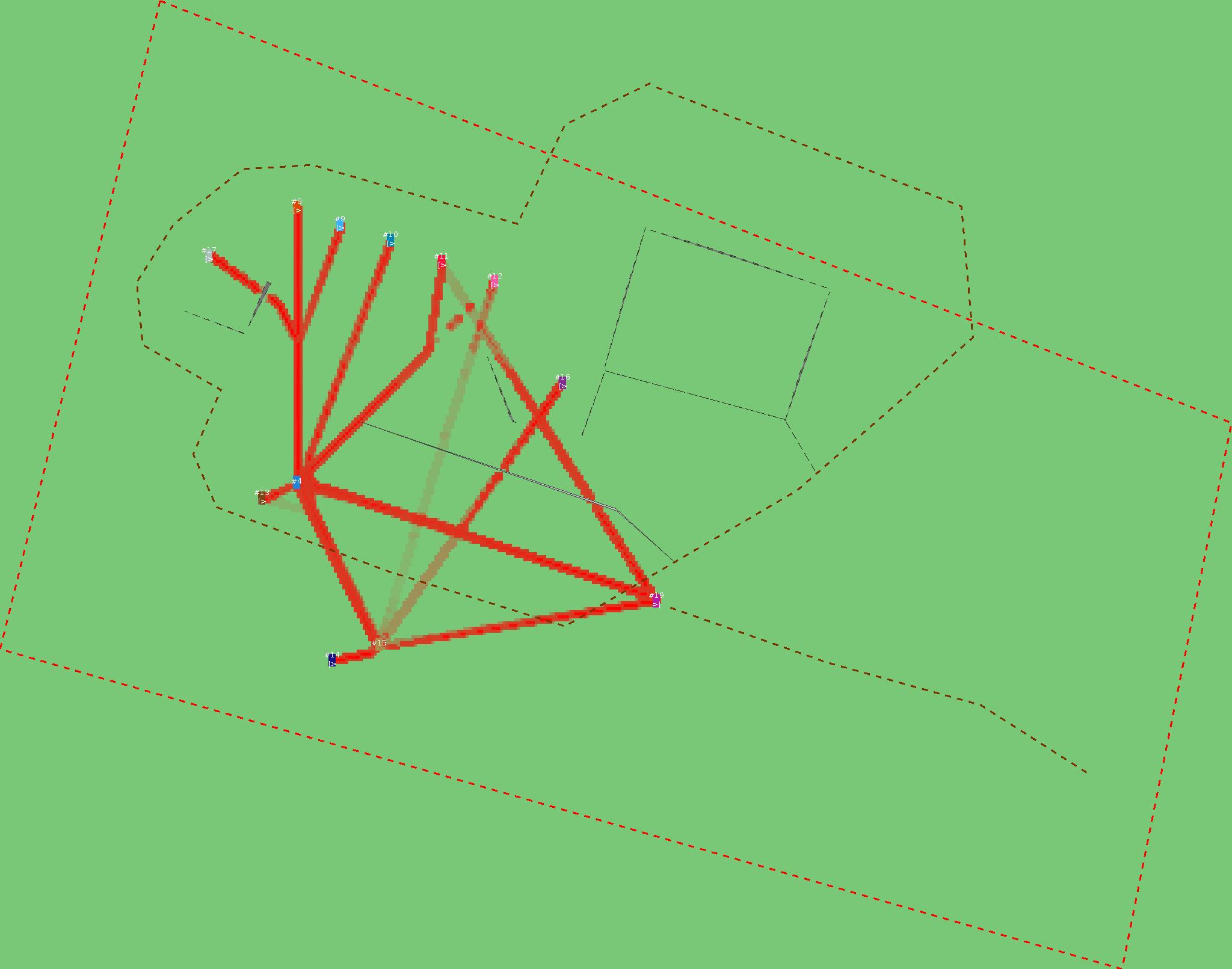 Красным цветом показаны места, где, вероятнее всего, появятся стихийные тропы..