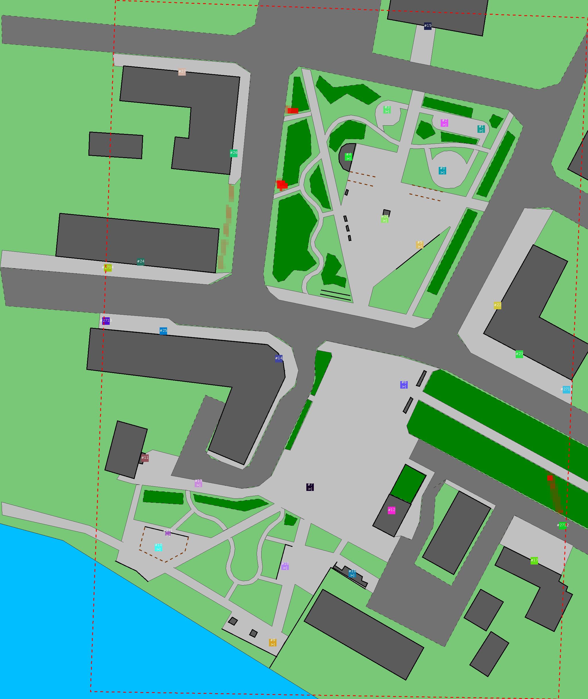 Красным цветом показаны места, где, вероятнее всего, появятся стихийные тропы..
