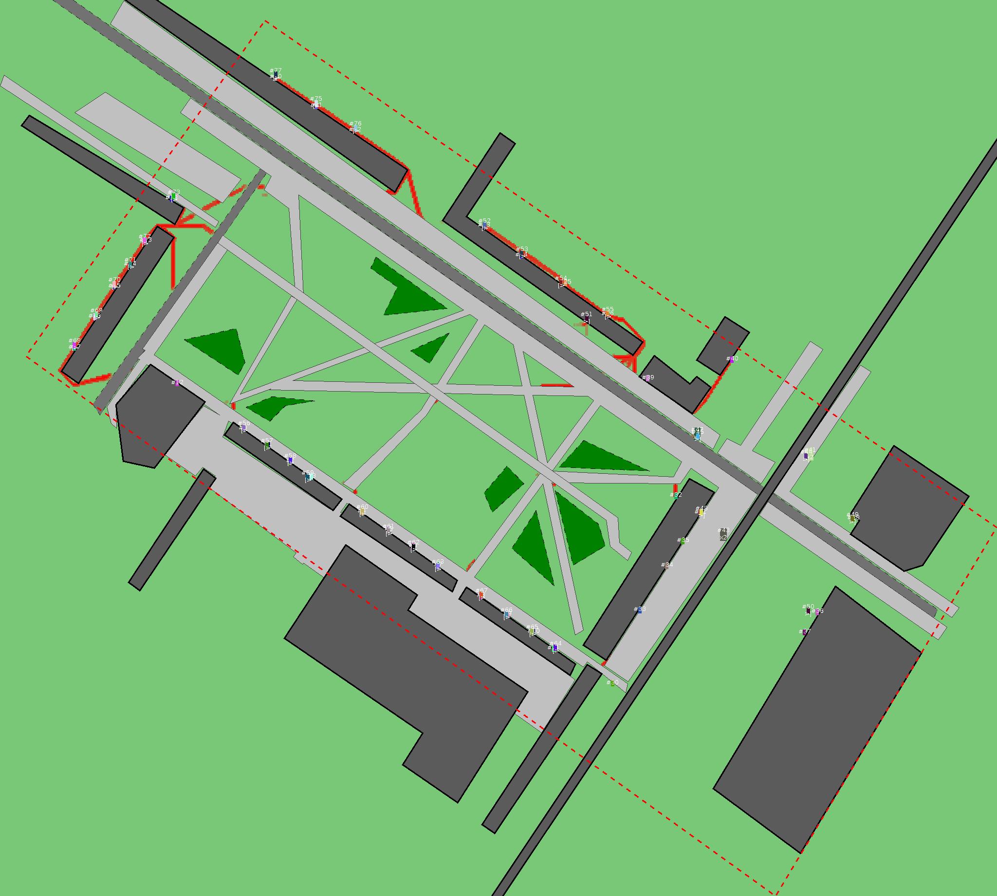 Красным цветом показаны места, где, вероятнее всего, появятся стихийные тропы..
