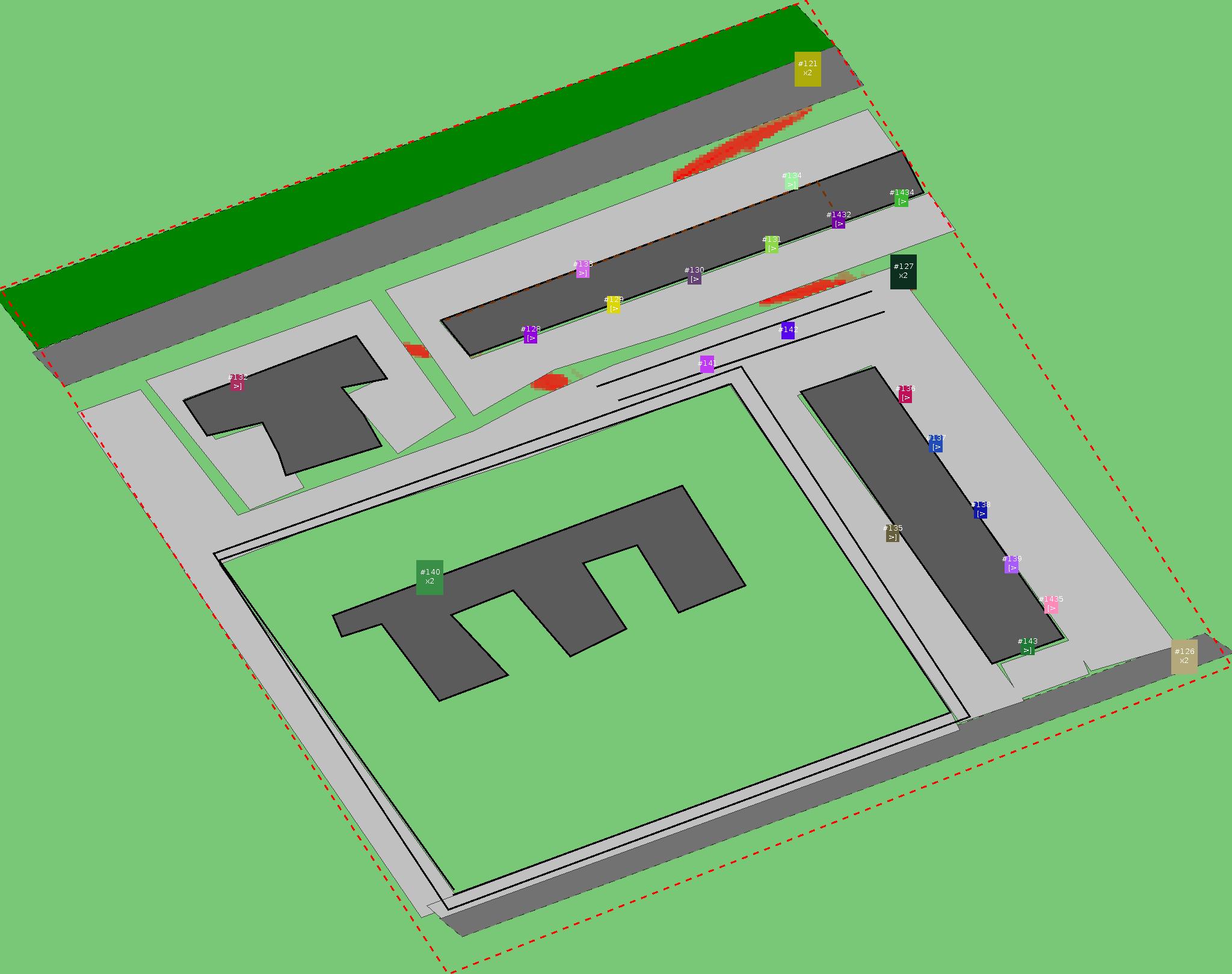 Красным цветом показаны места, где, вероятнее всего, появятся стихийные тропы..