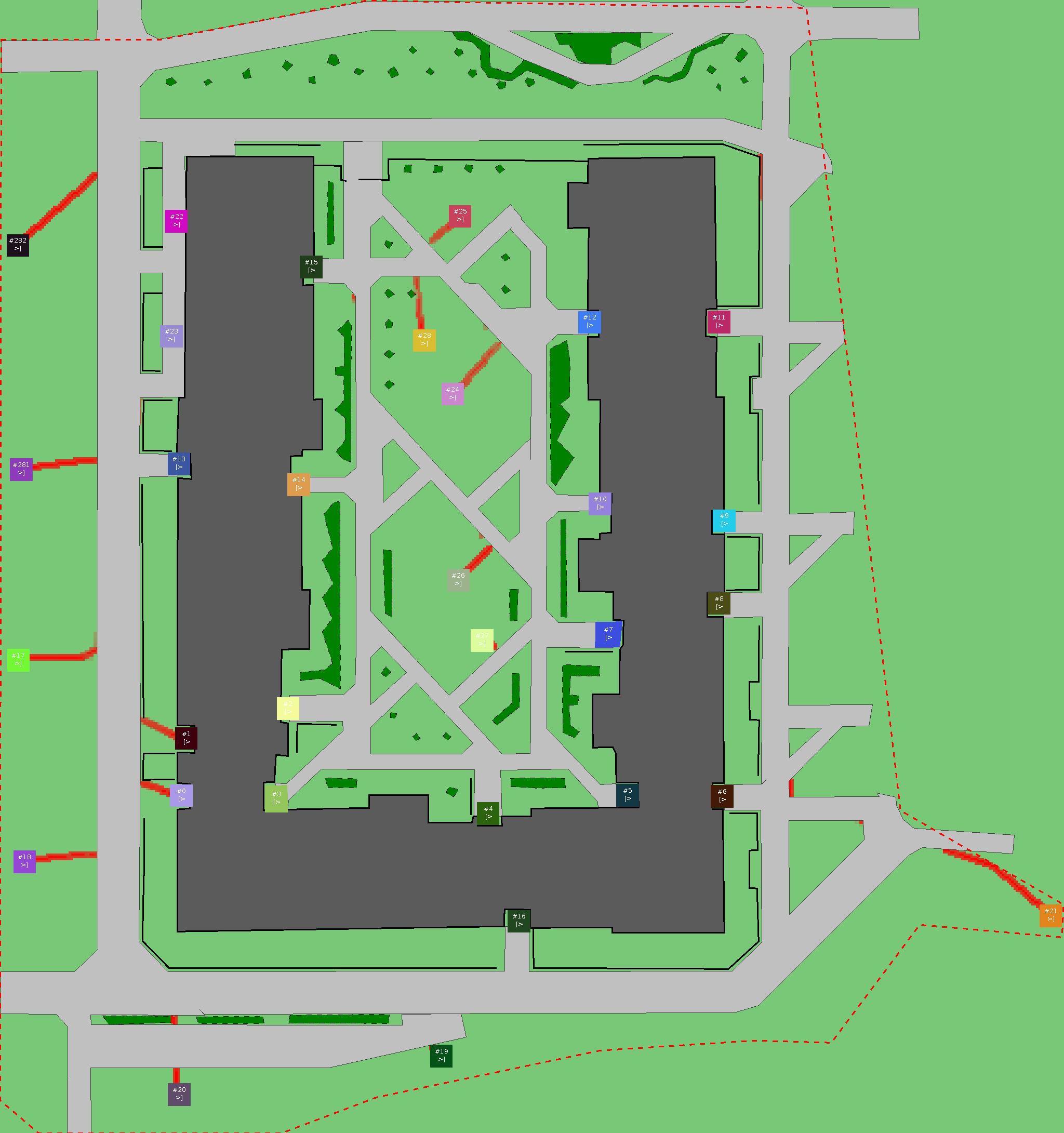 Красным цветом показаны места, где, вероятнее всего, появятся стихийные тропы..