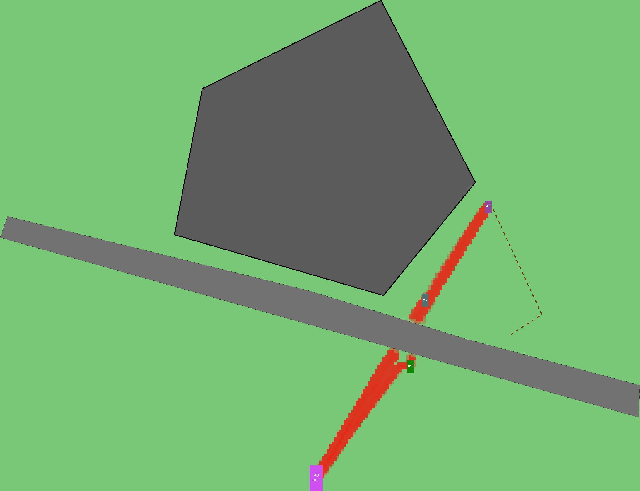 Красным цветом показаны места, где, вероятнее всего, появятся стихийные тропы..